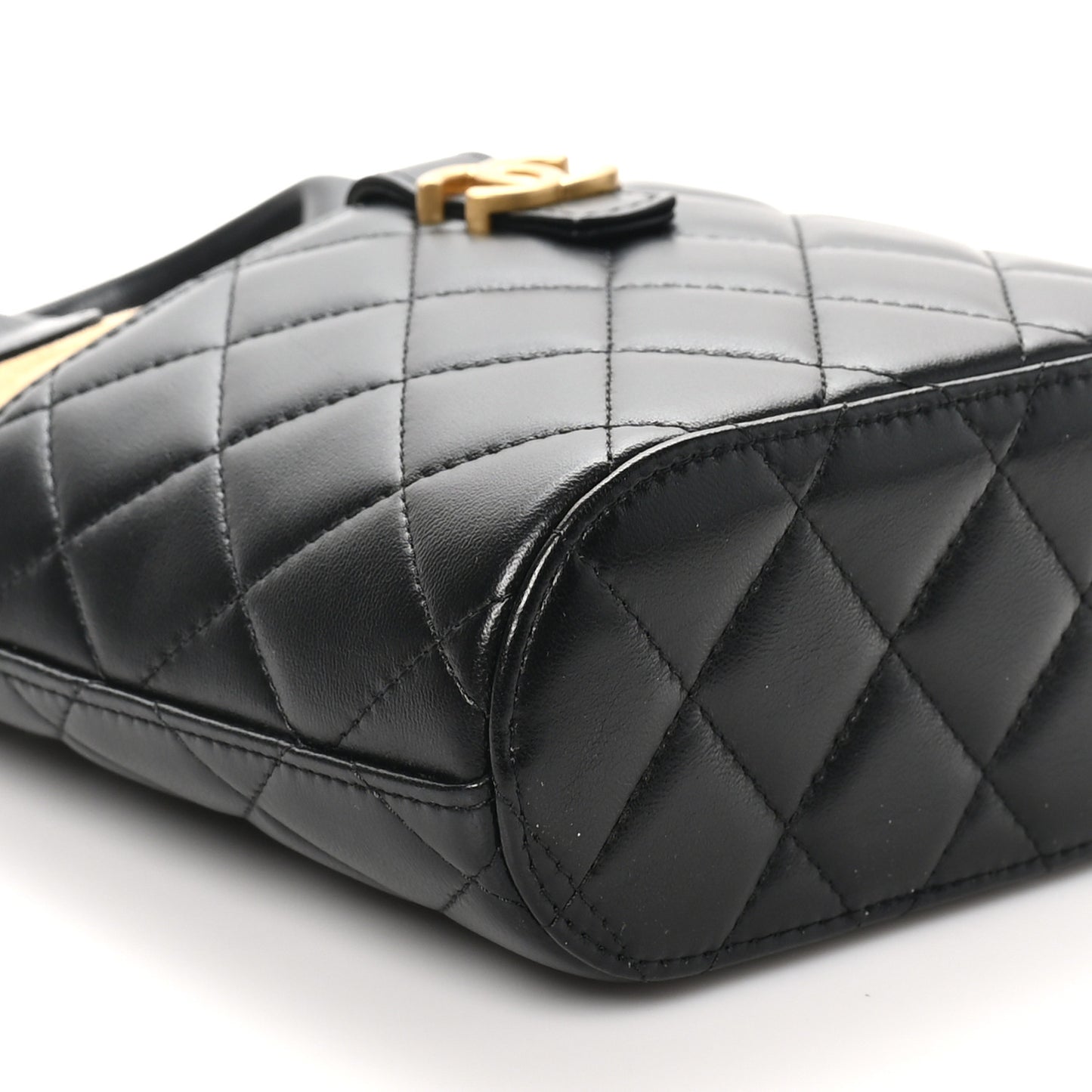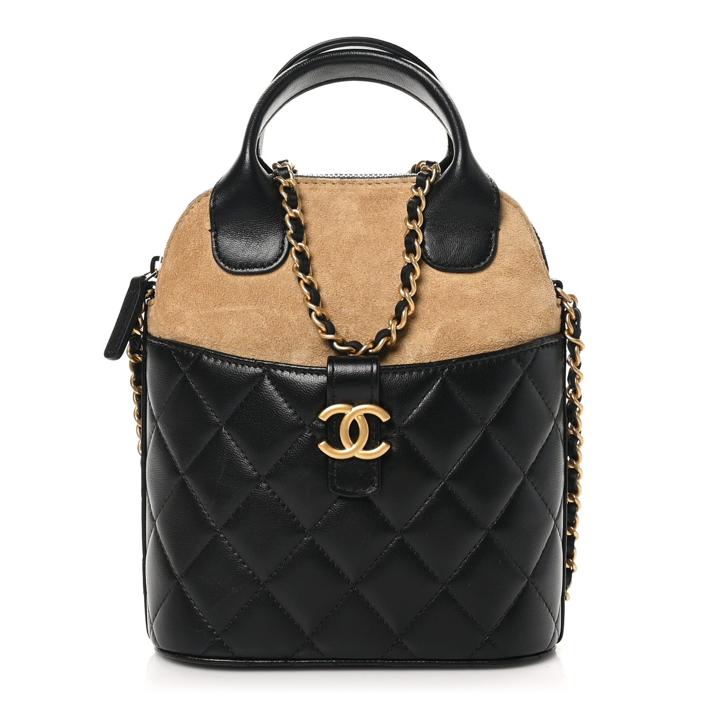 Chanel/ Bags/ Clutch & Evening /Chanel Suede Shiny Lambskin Quilted Top Handle Clutch With Chain Black Beige