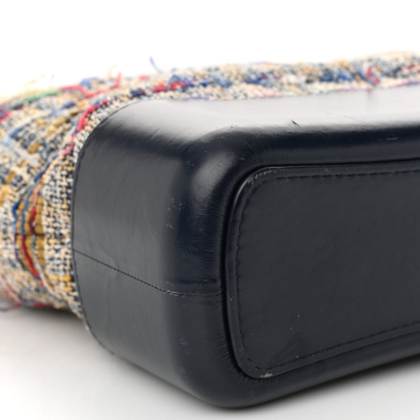 This is an authentic CHANEL Tweed Calfskin Quilted Medium Gabrielle Hobo in Navy. Chanel's newest "It" bag features a diamond-stitched multicolored tweed, with a sturdy smooth navy blue calfskin leather base. The bag features thin aged gold, silver, and ruthenium chain link leather threaded shoulder straps with a shoulder pad. The top zipper opens to a spacious light blue fabric interior with zipper and patch pockets.Follow this item for alerts. Chanel is a registered trademark of Chanel. FASHIONPHILE is not affiliated with Chanel.