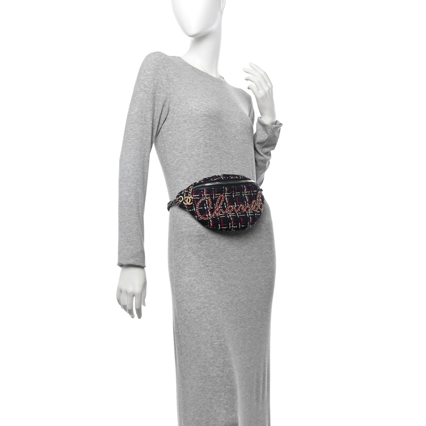 This is an authentic CHANEL Tweed Quilted Chain 20s Signe Waist Bag in Multicolor. This stylish waist bag is finely crafted of multicolor tweed fabric. The bag features a rear pocket, an aged gold chain link and leather belt strap with adjustment links, and a top zipper pocket with a Chanel CC zipper pull. This opens to a red fabric interior with a zipper pocket.Follow this item for alerts. Chanel is a registered trademark of Chanel. FASHIONPHILE is not affiliated with Chanel.