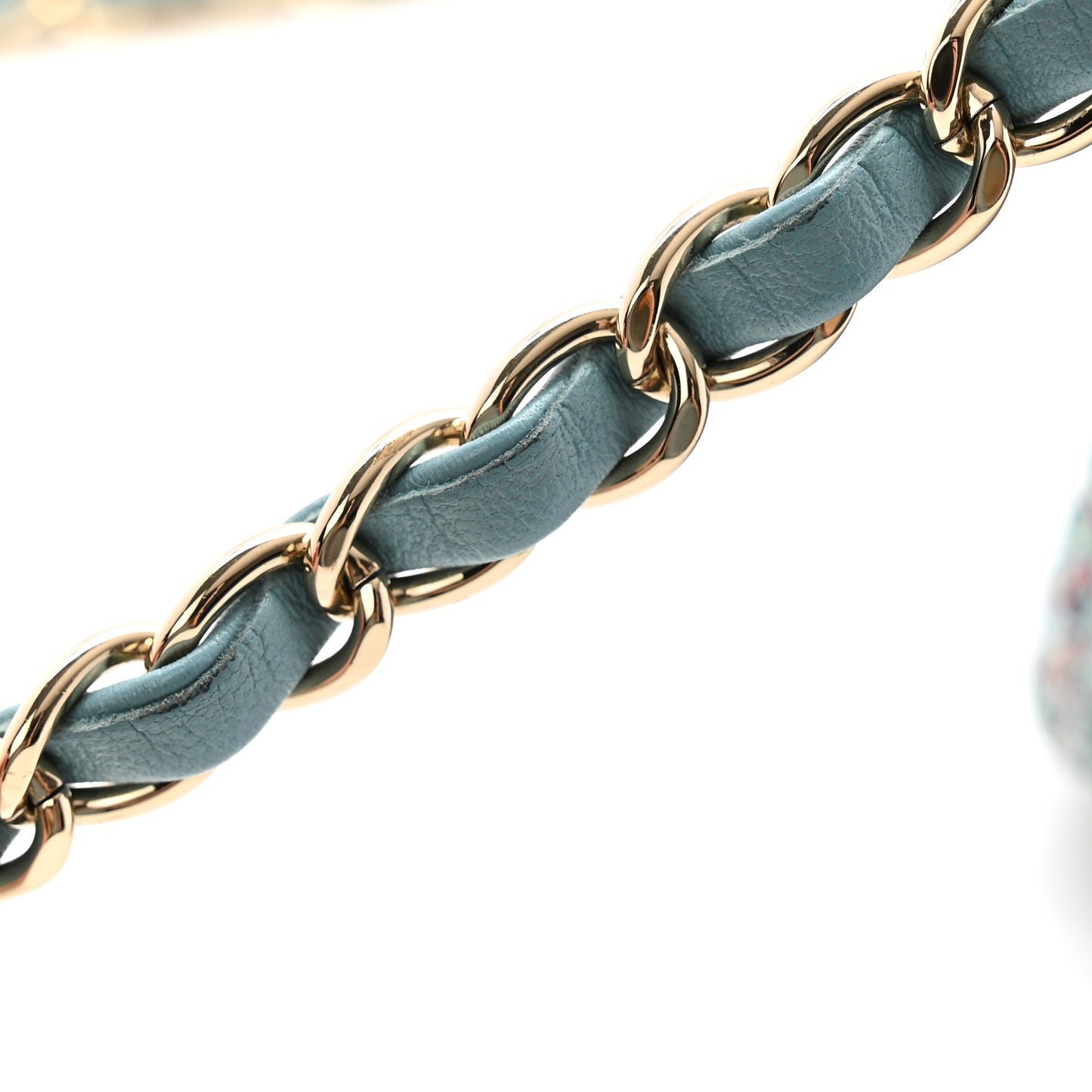 This is an authentic CHANEL Tweed Quilted Mini Rectangular Flap in Turquoise, Purple, White and Red. This stunning small crossbody shoulder bag is crafted of blue and multicolor tweed. The bag features a polished gold chain link shoulder strap threaded with blue leather and a frontal flap with a polished gold Chanel CC turn lock. This opens to a compact blue leather interior with zipper and patch pockets.Follow this item for alerts. Chanel is a registered trademark of Chanel. FASHIONPHILE is not affiliated with Chanel.