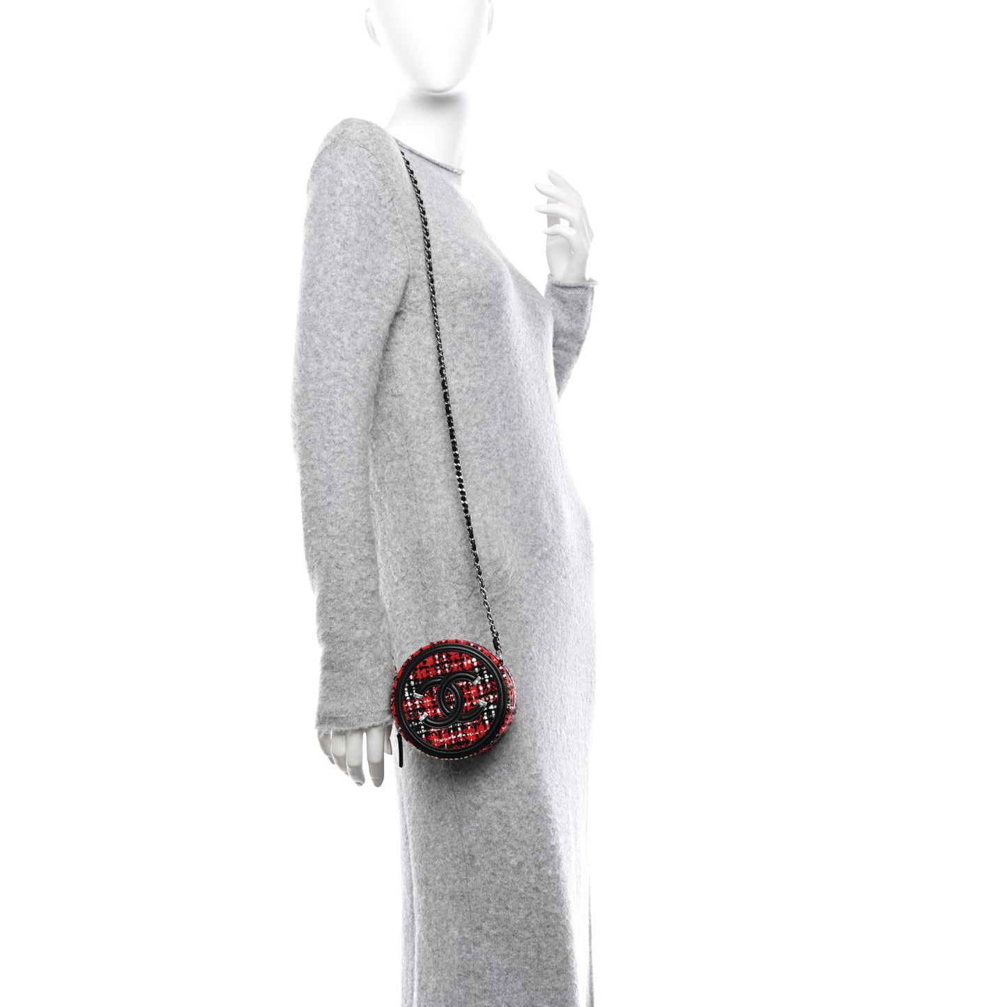 Chanel/ Bags/ Shoulder Bags /Chanel Tweed Quilted Round Filigree Clutch With Chain Red Black