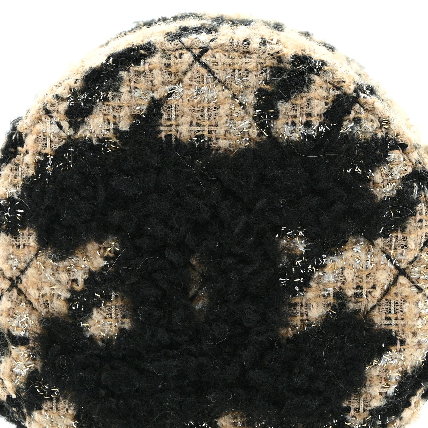 This is an authentic CHANEL Tweed Shearling Quilted Round Clutch With Chain and Coin Purse in Beige and Black. This stylish shoulder bag is crafted of diamond quilted tweed in beige and black. It features a black CC logo, a coin purse, and a leather threaded gold chain link strap. The top zipper opens to a beige fabric interior with a patch pocket.Follow this item for alerts. Chanel is a registered trademark of Chanel. FASHIONPHILE is not affiliated with Chanel.
