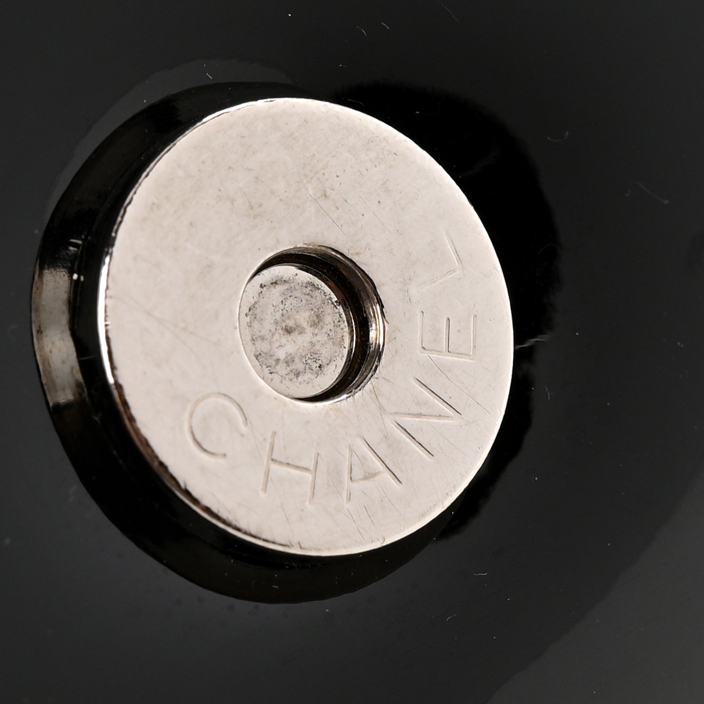 This is an authentic CHANEL Vinyl Small Lipstick Flap Bag in Black. This fabulous shoulder bag is crafted of eye-catching black vinyl. The bag features a large plexiglass Chanel CC logo, expandable sides, and silver chain handles threaded with leather. The crossover flap opens to a grey fabric interior with a zipper pocket.Follow this item for alerts. Chanel is a registered trademark of Chanel. FASHIONPHILE is not affiliated with Chanel.