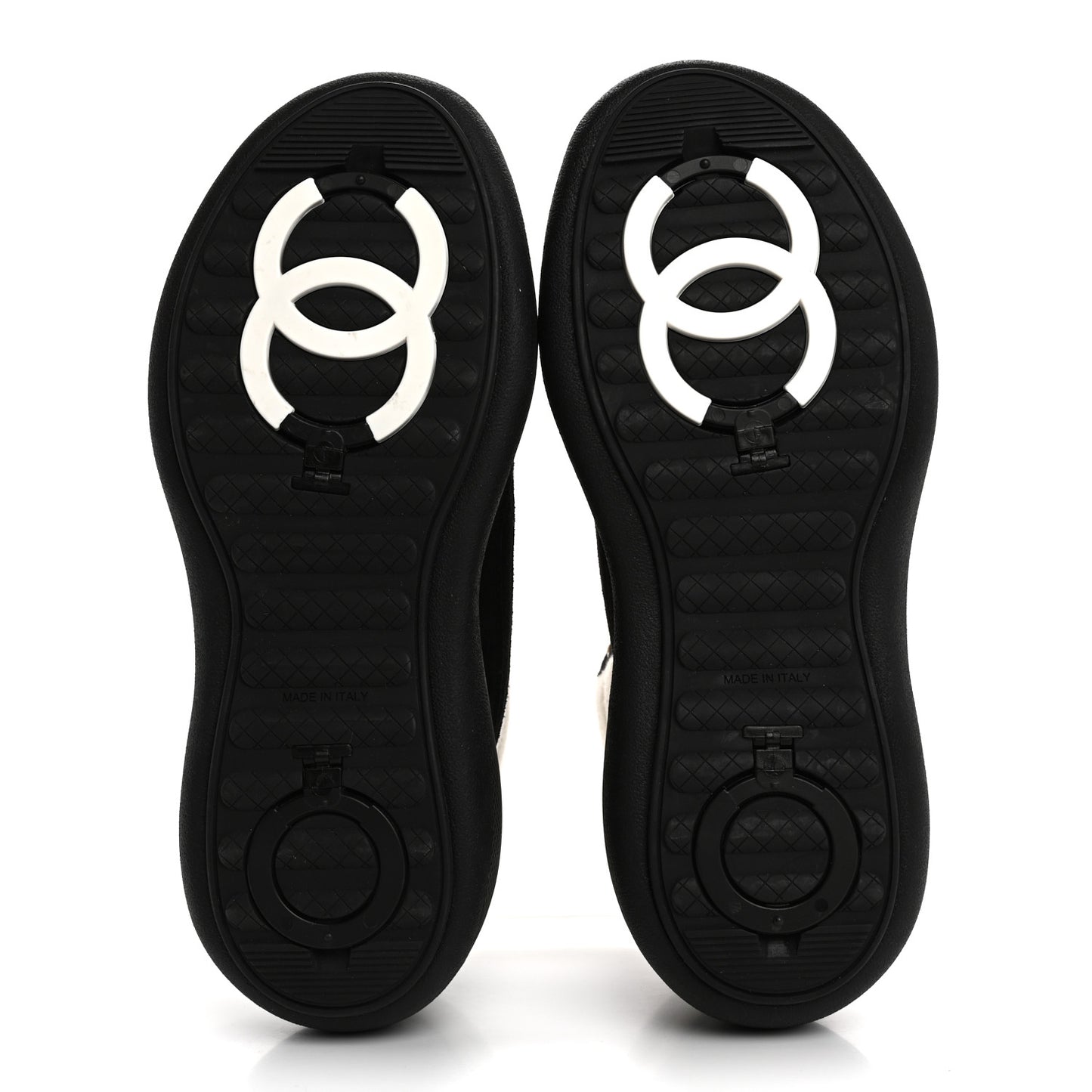 This is an authentic pair of CHANEL Wool Suede CC Lace Up Ankle Snow Boots size 39.5 in Ivory and Black. These unique snow boots are crafted of ivory wool with suede leather trim. They feature grey and black laces, chunky 2-inch heels on 1.5-inch platforms, and rotating mechanisms on the soles that open with a CHANEL shoe tool and turn to reveal spikes for walking on ice and snow.Follow this item for alerts. Chanel is a registered trademark of Chanel. FASHIONPHILE is not affiliated with Chanel.