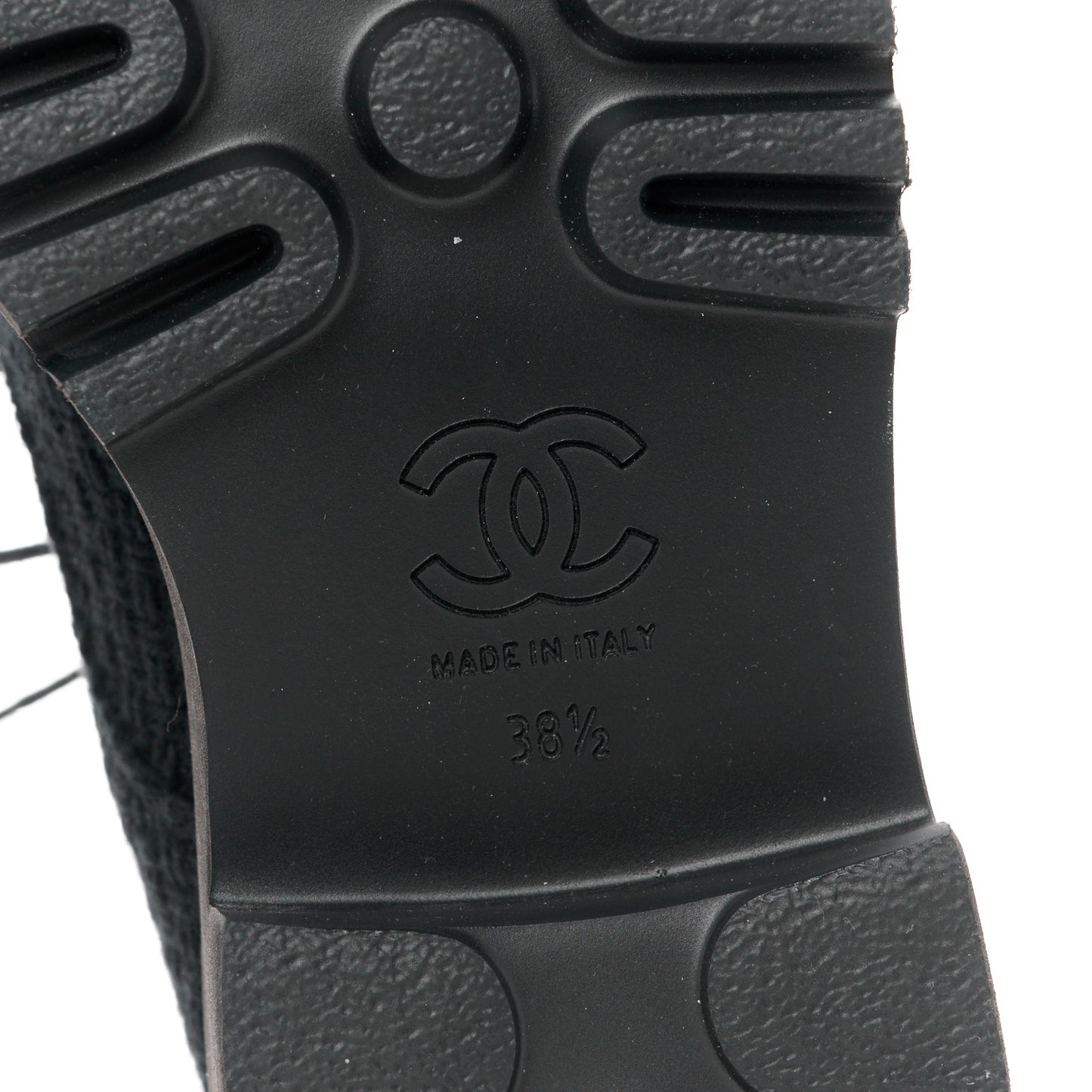 Chanel/ Accessories/ Shoes /Chanel Wool Tweed Calfskin Lace-Up Loafers 38.5 Black