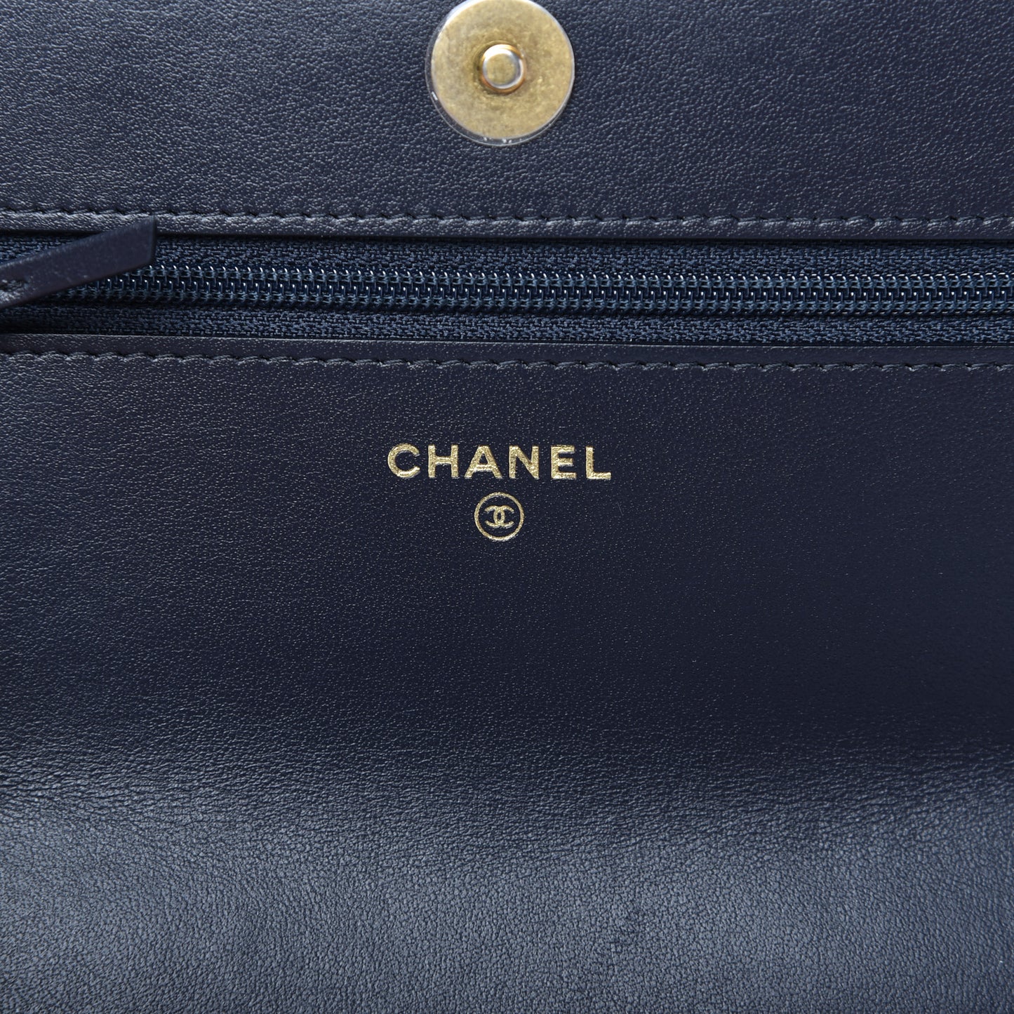 This is an authentic CHANEL Wool Tweed Lambskin Quilted Chanel 19 Wallet On Chain WOC and Coin Purse in Purple and Blue. This stylish shoulder bag is crafted of diamond quilted tweed in purple and blue. The refined bag features a Chanel CC embellishment on the flap, and a leather threaded aged gold and ruthenium chain link shoulder strap with a shoulder pad. The front flap opens to a black fabric interior with zipper and patch pockets and card slots.Follow this item for alerts. Chanel is a registered trademark of Chanel. FASHIONPHILE is not affiliated with Chanel.