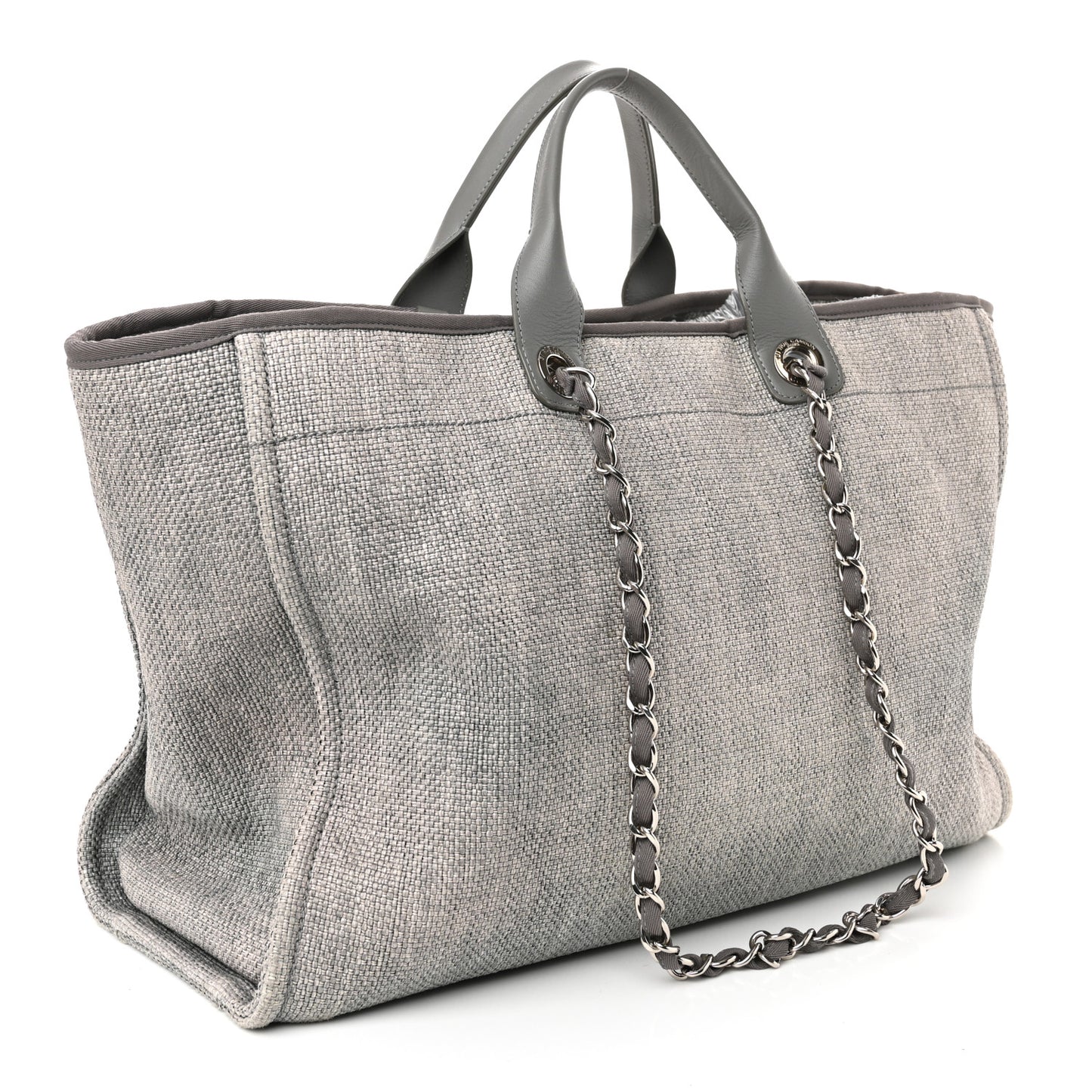 Chanel/ Bags/ Shoulder Bags /Chanel Woven Straw Raffia Large Deauville Tote Grey