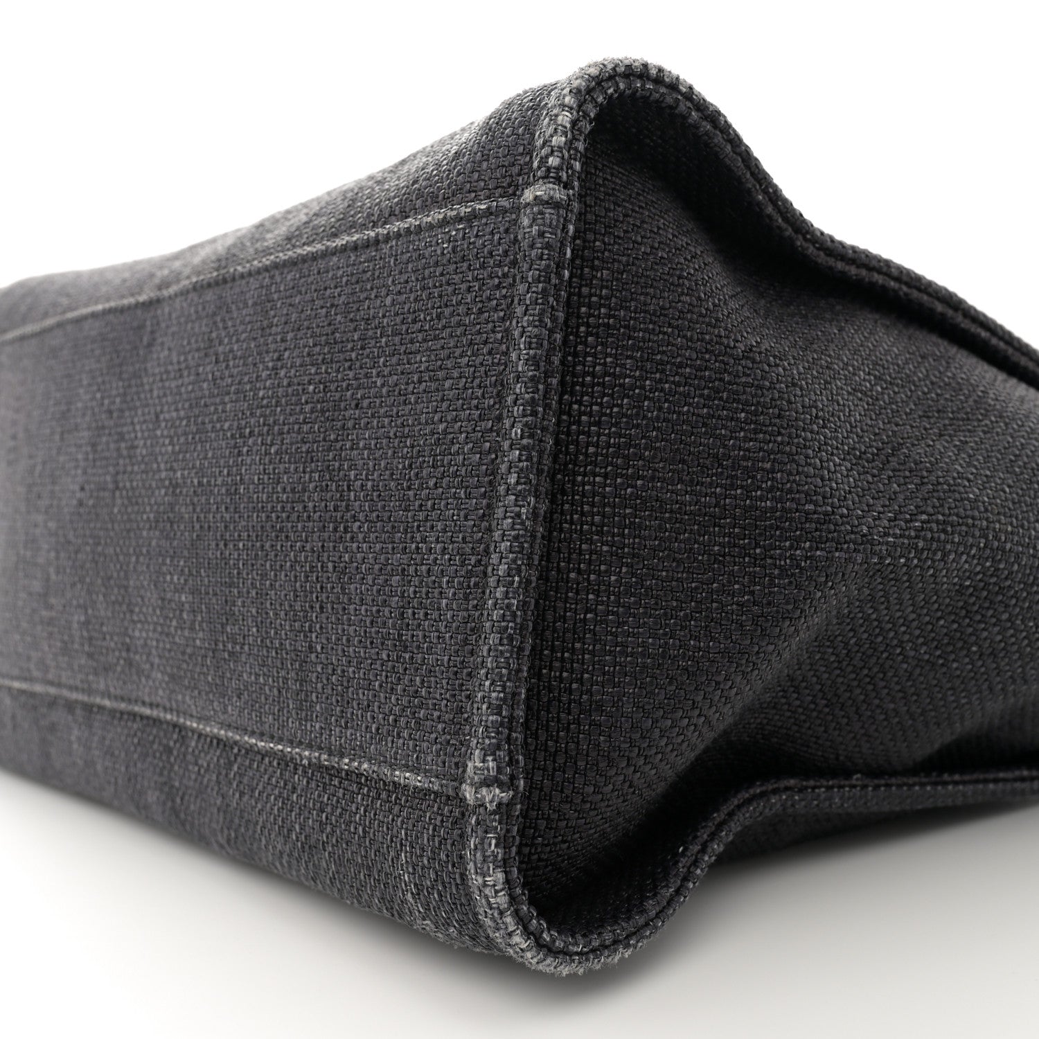 This is an authentic CHANEL Woven Straw Raffia Medium Deauville Tote in Black. This stylish handbag is crafted of fine woven straw raffia in black with a grey embroidered Chanel Rue Cambon Paris logo on the front. The bag features black rolled leather top handles, black grosgrain fabric top trim, and fabric threaded gold chain shoulder straps. The top is open to a black fabric interior with zipper and patch pockets.Follow this item for alerts. Chanel is a registered trademark of Chanel. FASHIONPHILE is not affiliated with Chanel.