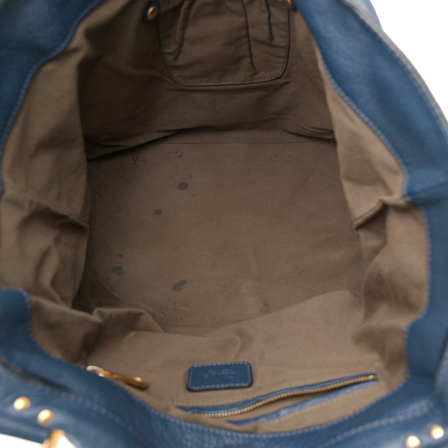 This is an authentic CHLOE Calfskin Large New Marcie Tote in Royal Navy. This stylish tote is crafted of finely textured calfskin leather in dark blue and features wrapped leather shoulder straps, an exterior pocket, and brass hardware. The top is open to an olive green fabric interior with a zipper and a small patch pocket.Follow this item for alerts. Chloe is a registered trademark of Chloe. FASHIONPHILE is not affiliated with Chloe.