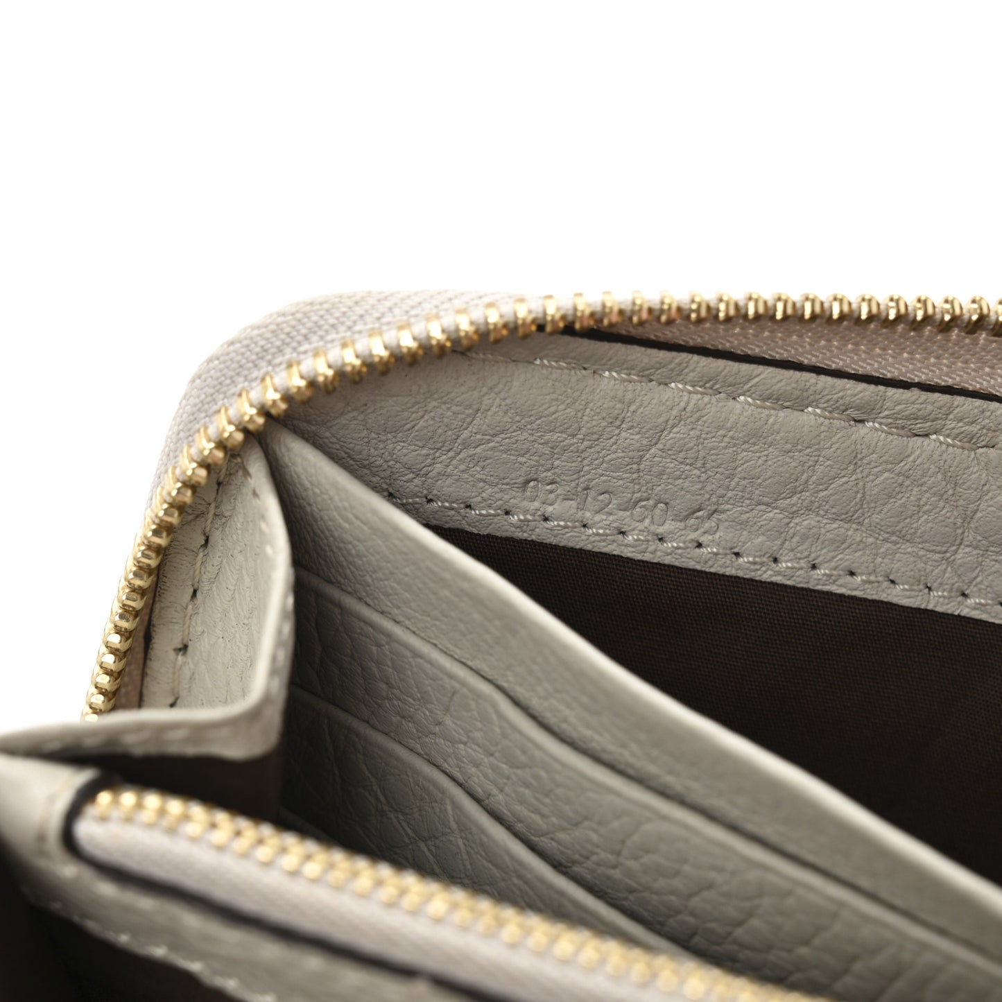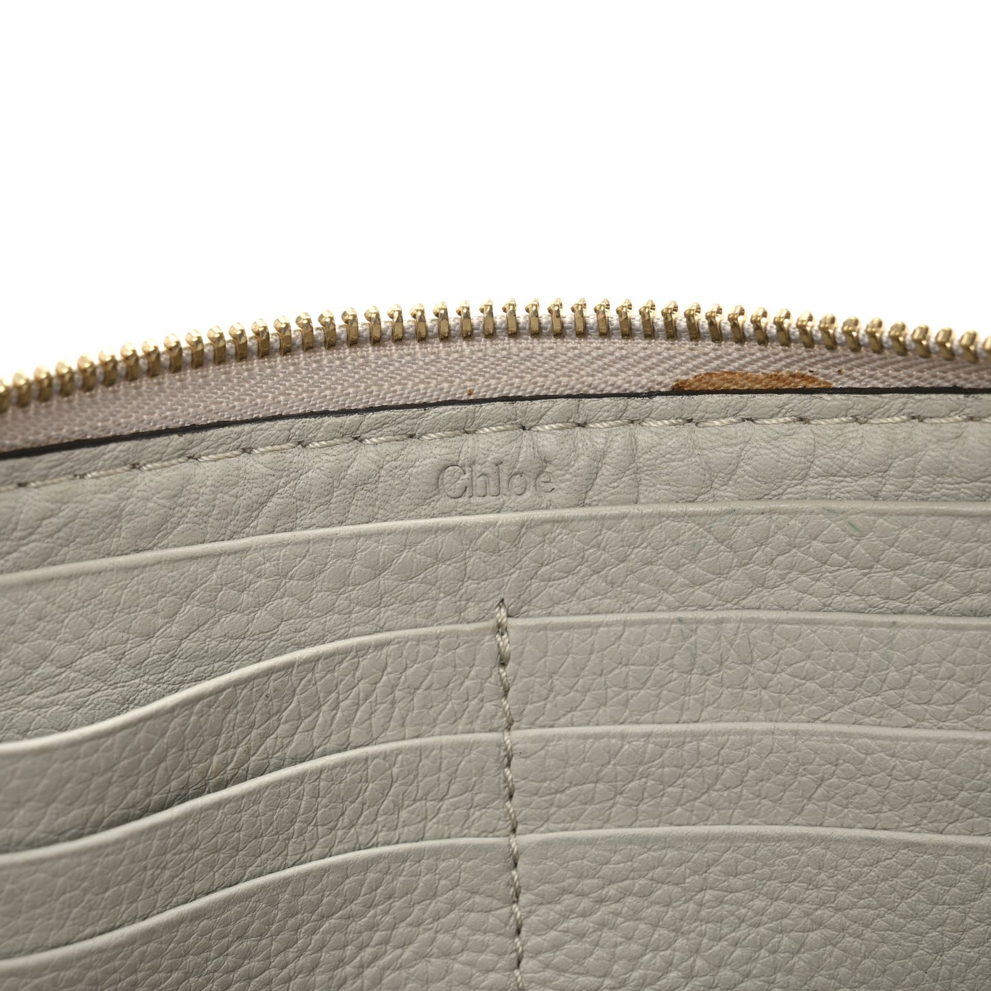 This is an authentic CHLOE Calfskin Marcie Long Zip Around Wallet in Dove. This wallet is crafted of lovely detailed calfskin leather in grey with a unique polished brass loop and leather tassel clasp. This opens to a matching leather interior with two panels fully lined with card slots, patch pockets, and full zipper compartments.Follow this item for alerts. Chloe is a registered trademark of Chloe. FASHIONPHILE is not affiliated with Chloe.