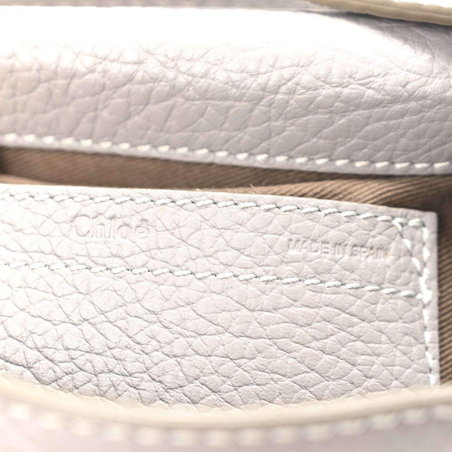 This is an authentic CHLOE Calfskin Mini Marcie Round Crossbody Bag in Cashmere Grey. This chic saddle bag is crafted of grained calfskin leather in grey. The bag features an adjustable leather crossbody strap with gold-plated hardware and a front flap with decorative stitching and strap-and-loop closure. This shoulder bag opens to a khaki green fabric interior with patch pockets.Follow this item for alerts. Chloe is a registered trademark of Chloe. FASHIONPHILE is not affiliated with Chloe.