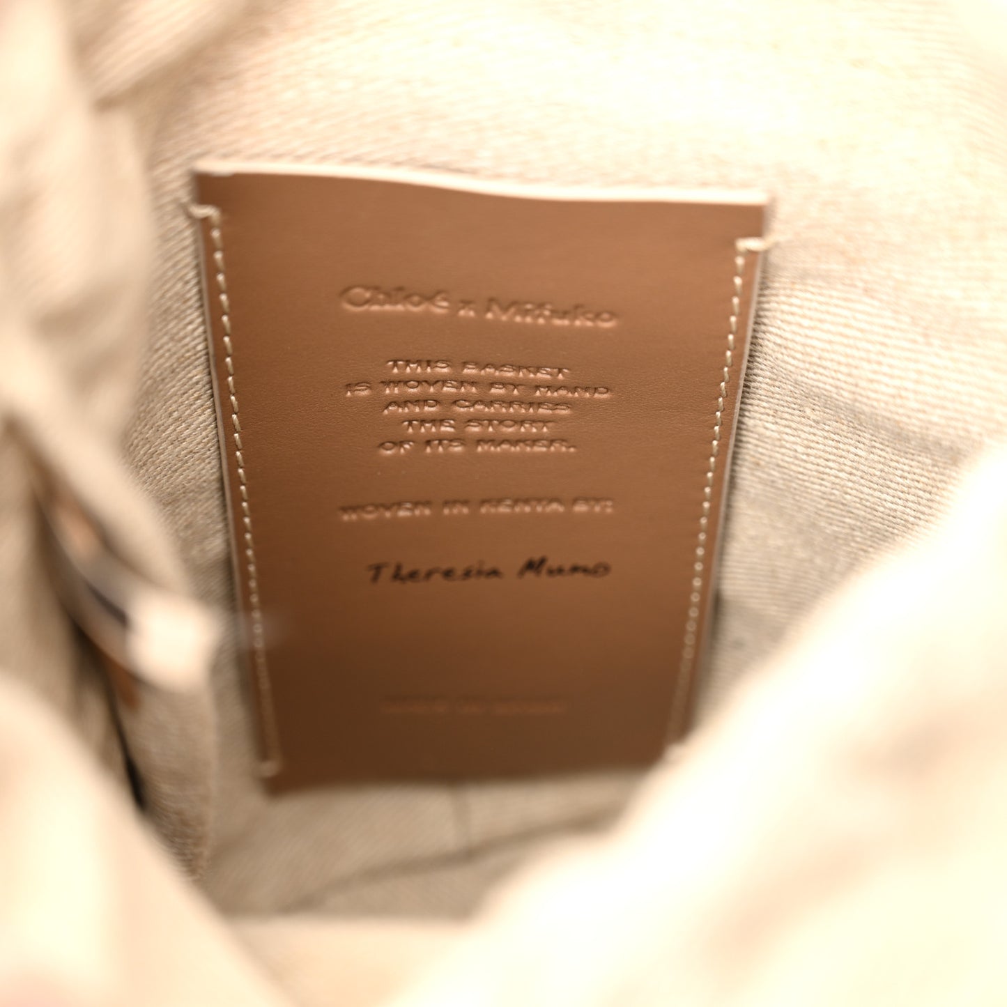This is an authentic CHLOE Natural Woven Fiber Small Woody Basket in Blushy Beige. This chic and lovely shoulder bag is crafted of woven sustainable straw in beige. The shoulder bag features a canvas handle, a long leather shoulder strap, and gold hardware. The top opens to a fabric interior with a pocket.Follow this item for alerts. Chloe is a registered trademark of Chloe. FASHIONPHILE is not affiliated with Chloe.