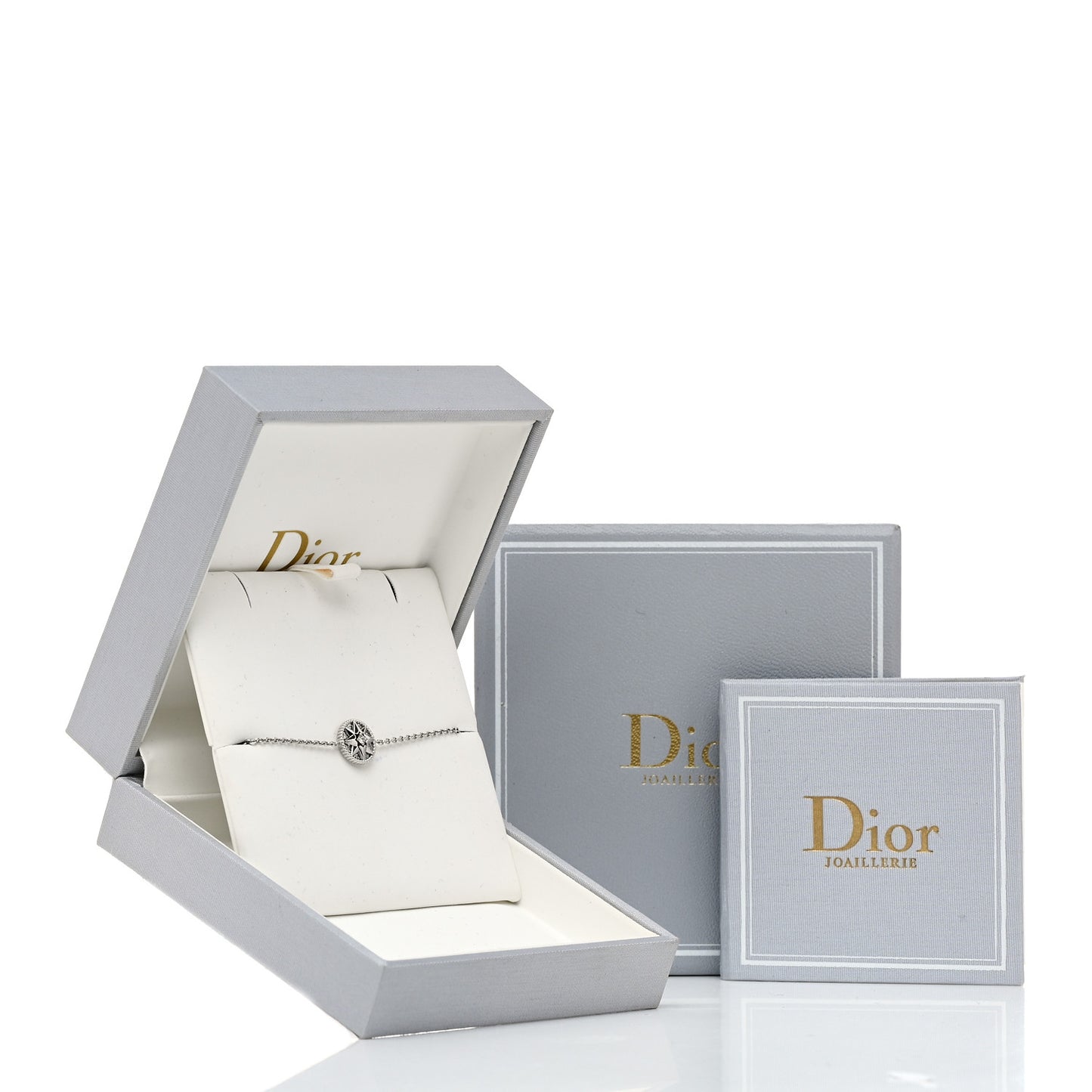 This is an authentic CHRISTIAN DIOR 18K White Gold Pave Diamond Rose Des Vents Bracelet. The bracelet is crafted of 18 karat white gold and features a disc station with diamond accents, approximately .12 total carat weight.Follow this item for alerts. Christian Dior is a registered trademark of Christian Dior. FASHIONPHILE is not affiliated with Christian Dior.