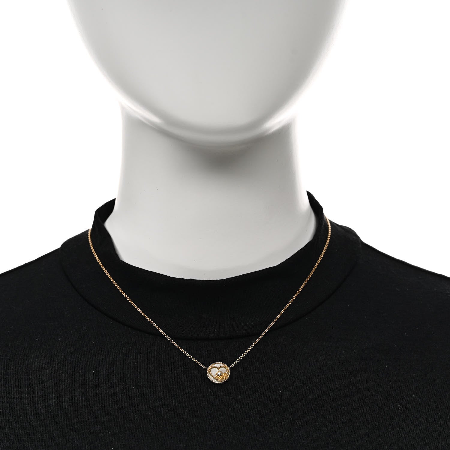 This is an authentic CHRISTIAN DIOR 18K Yellow Gold Diamond Mother of Pearl Rose Des Vents Heart Necklace. The necklace is crafted of 18 karat yellow gold and features a round mother of pearl pendant with a beaded frame detail with a heart motif accented with a round brilliant cut weighing approximately .04 total carat weight.Follow this item for alerts. Christian Dior is a registered trademark of Christian Dior. FASHIONPHILE is not affiliated with Christian Dior.