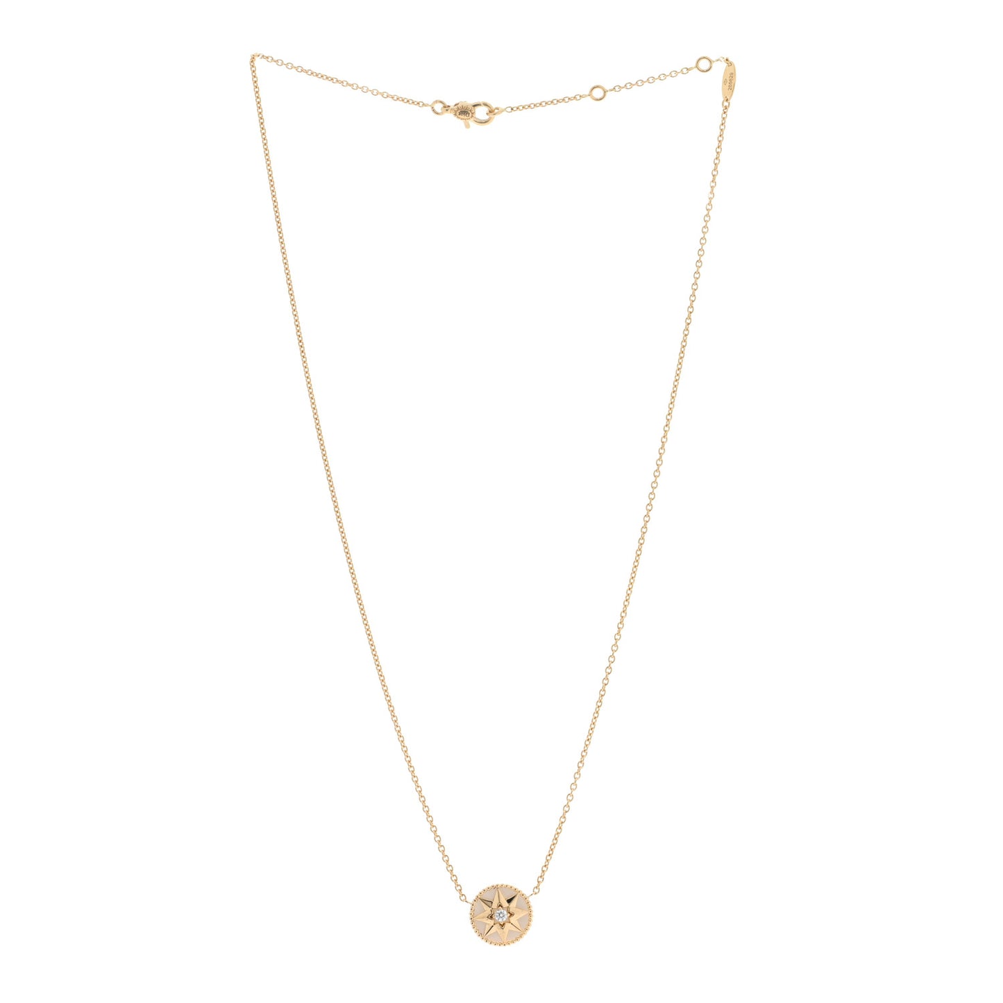 This is an authentic CHRISTIAN DIOR 18K Yellow Gold Diamond Mother of Pearl Rose Des Vents Necklace. The necklace is crafted of 18 karat yellow gold and features a round mother of pearl pendant with a beaded frame detail, an eight point star emblem with a central round brilliant cut weighing approximately .04 carat.Follow this item for alerts. Christian Dior is a registered trademark of Christian Dior. FASHIONPHILE is not affiliated with Christian Dior.