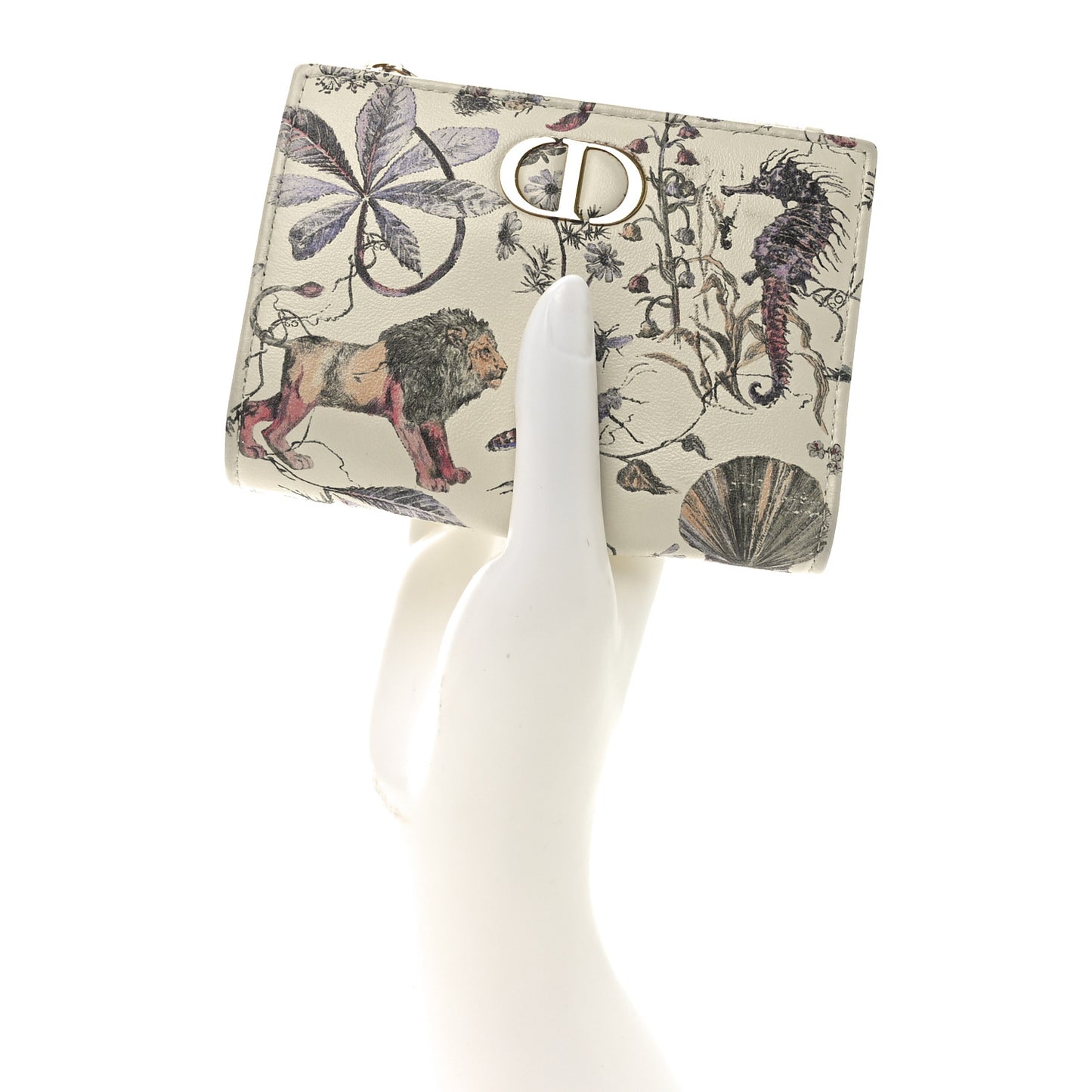 This is an authentic Calfskin Cabinet De Curiosites Print Caro Medium Wallet in Latte and Multicolor. This wallet is crafted of off-white leather with a multicolored animal print motif. It features a zippered compartment and gold CD logo on the front. The wallet unsnaps to a white leather interior card slots and billfold.Follow this item for alerts. Christian Dior is a registered trademark of Christian Dior. FASHIONPHILE is not affiliated with Christian Dior.