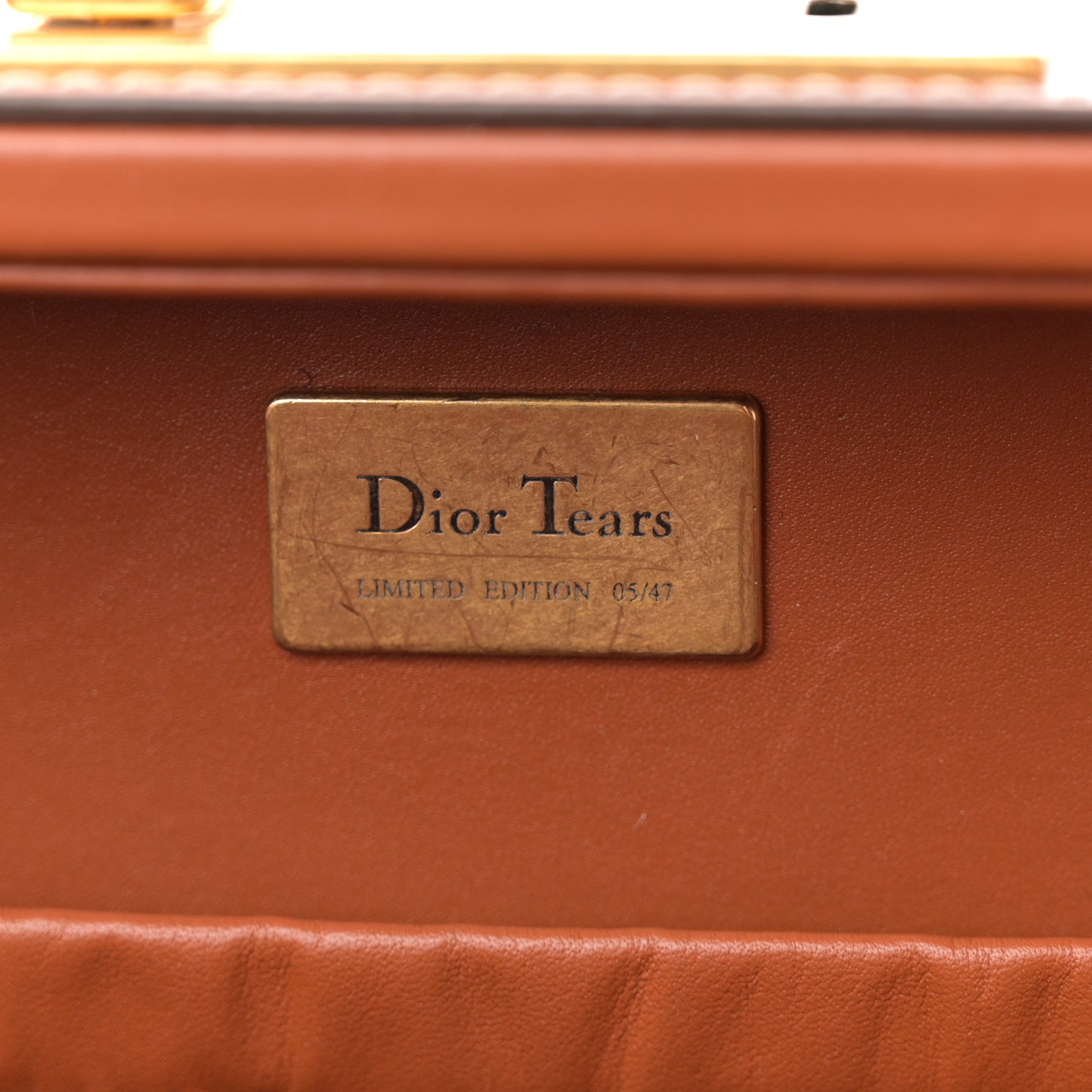 This is an authentic CHRISTIAN DIOR Calfskin Dior Tears Mini Briefcase in Brown and Red. This miniature briefcase is crafted of calfskin leather in brown. This small briefcase features a leather top handle, leather shoulder strap, a red patch on the front panel with Dior Tears in white on it, and brass hardware. The suitcase opens with a brass latch closure that leads to a matching leather interior with a pocket.Follow this item for alerts. Christian Dior is a registered trademark of Christian Dior. FASHIONPHILE is not affiliated with Christian Dior.