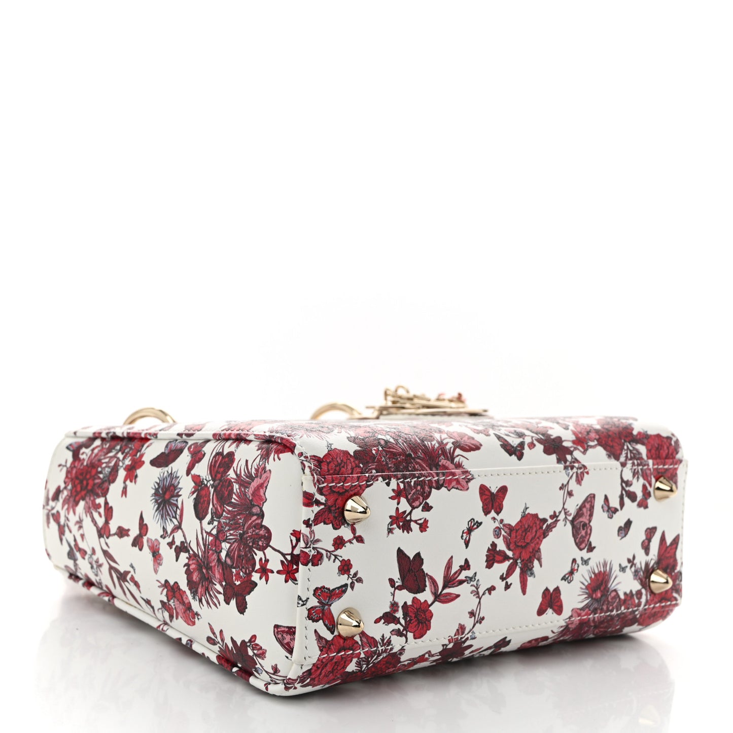 This is an authentic CHRISTIAN DIOR Calfskin Le Coeur Des Papillons Small My ABCDior Lady Dior in White and Multicolor. This elegant bag is crafted of white and multicolor calfskin leather with a floral design with butterflies throughout. The bag features leather top handles with polished litght gold hardware including wide eyelets and Dior letter charms. The top is open to a suede interior with zipper and patch pockets.Follow this item for alerts. Christian Dior is a registered trademark of Christian Dior. FASHIONPHILE is not affiliated with Christian Dior.