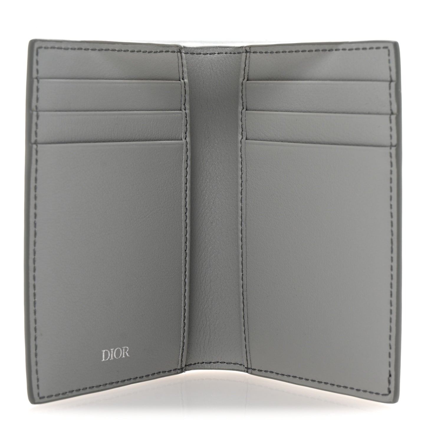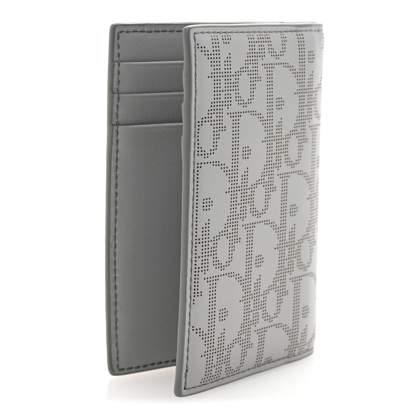 Christian Dior/ Accessories/ Wallets /Christian Dior Calfskin Perforated Oblique Bi-Fold Card Holder Grey