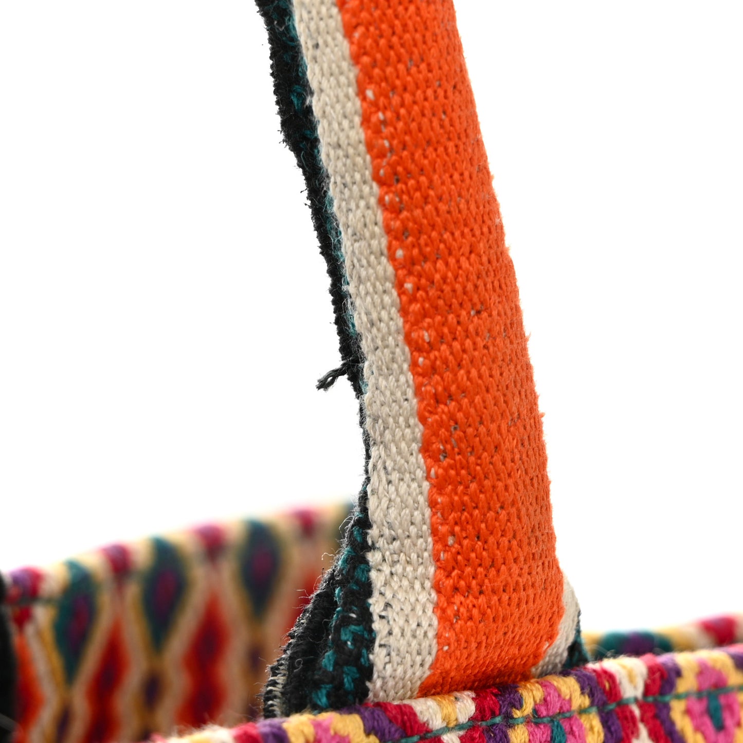 This is an authentic CHRISTIAN DIOR Canvas Embroidered Large Book Tote in Orange and Multicolor. This colorful tote is finely crafted of embroidered canvas with a bold tribal design. The bag features matching multicolor canvas rolled handles, with the CHRISTIAN DIOR logo embroidered across the front. The bag opens to a spacious fabric interior.Follow this item for alerts. Christian Dior is a registered trademark of Christian Dior. FASHIONPHILE is not affiliated with Christian Dior.