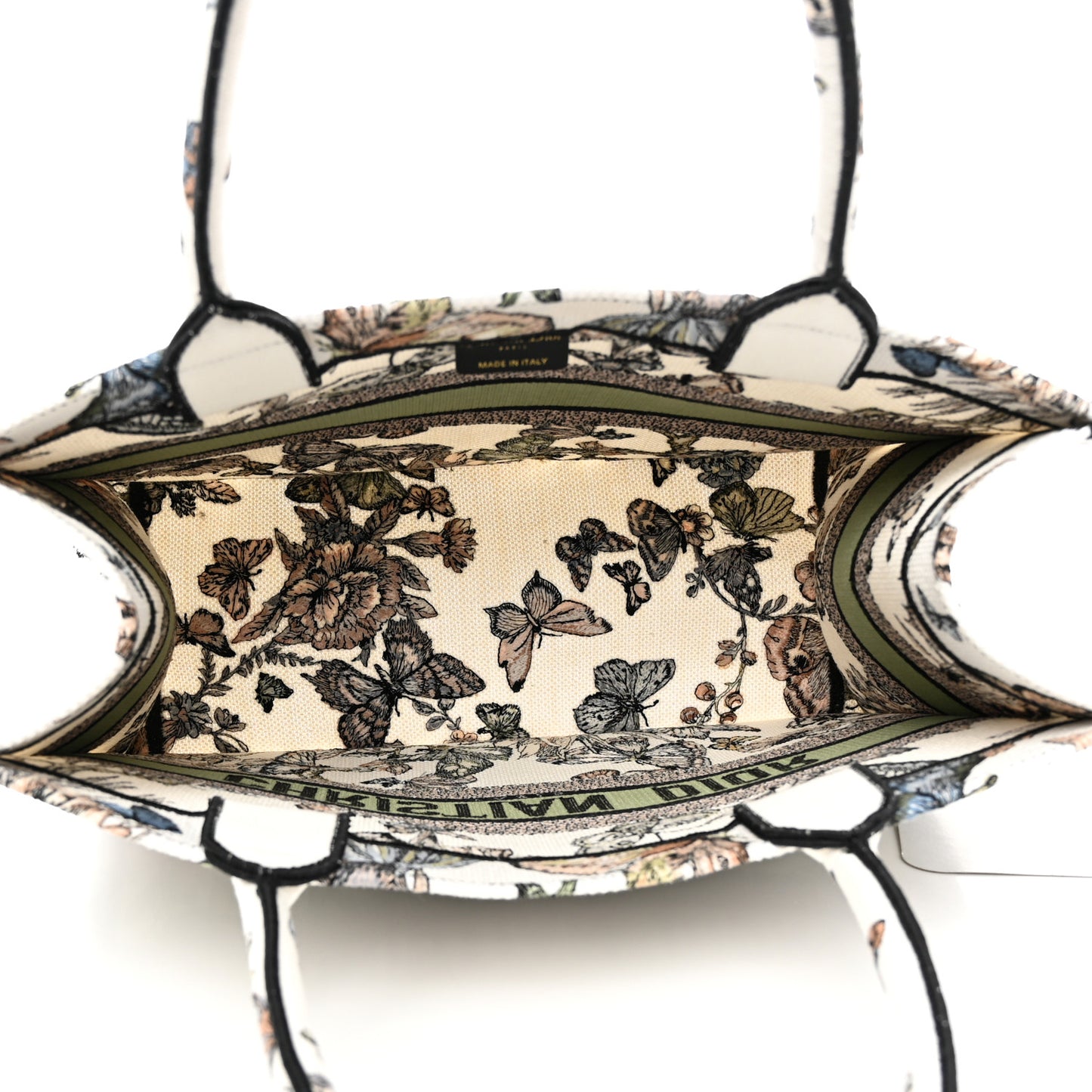 This is an authentic CHRISTIAN DIOR Canvas Embroidered Toile de Jouy Mexico Medium Book Tote in White and Multicolor. This colorful tote is finely crafted of embroidered canvas with butterfly graphics. The bag features matching canvas rolled handles, with the CHRISTIAN DIOR logo embroidered across the front. The bag opens to a spacious fabric interior.Follow this item for alerts. Christian Dior is a registered trademark of Christian Dior. FASHIONPHILE is not affiliated with Christian Dior.