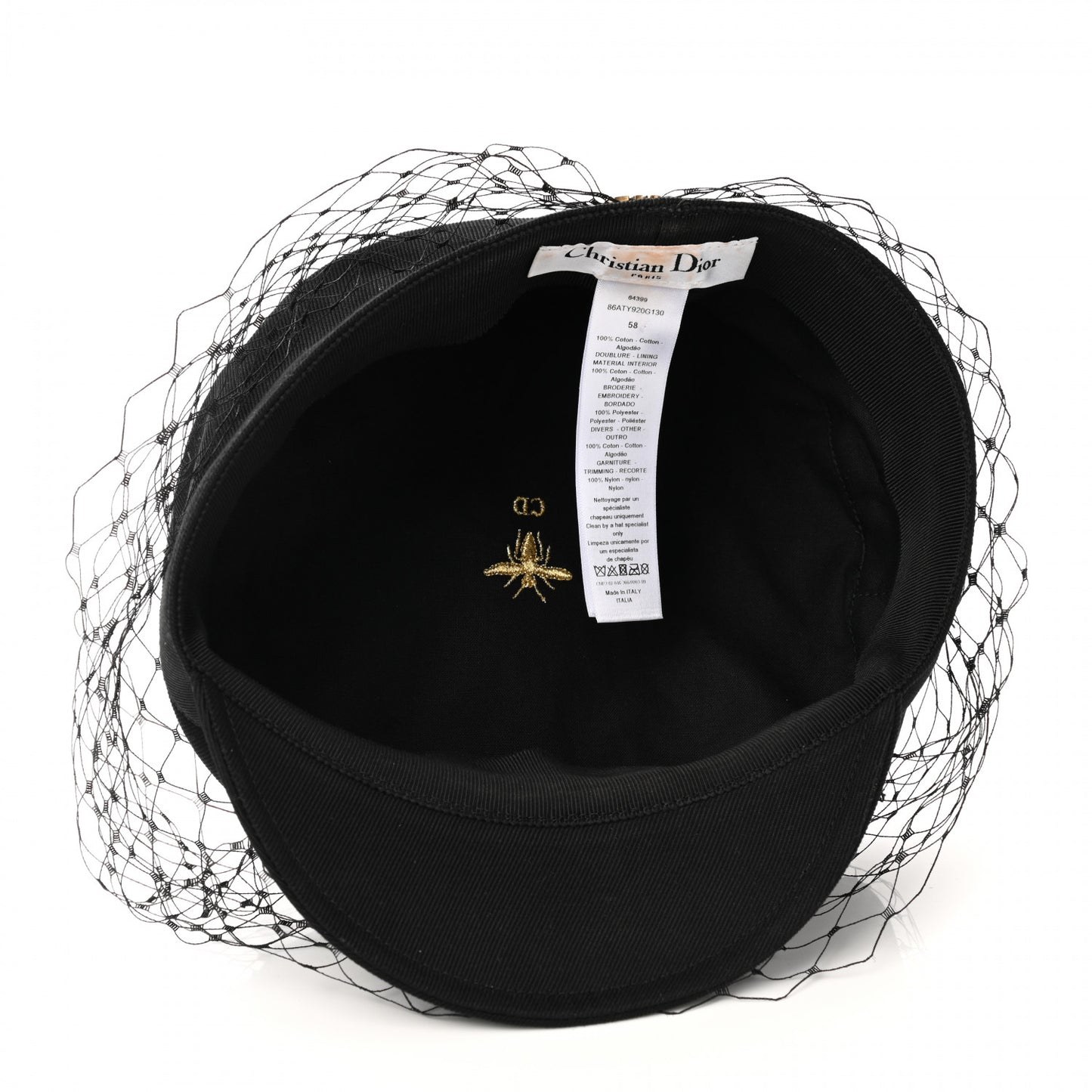 This is an authentic CHRISTIAN DIOR Cotton Canvas Arty Cap with Veil size 58 in Black. This chic cap is crafted of 100% cotton in black, covered with a delicate net.Follow this item for alerts. Christian Dior is a registered trademark of Christian Dior. FASHIONPHILE is not affiliated with Christian Dior.