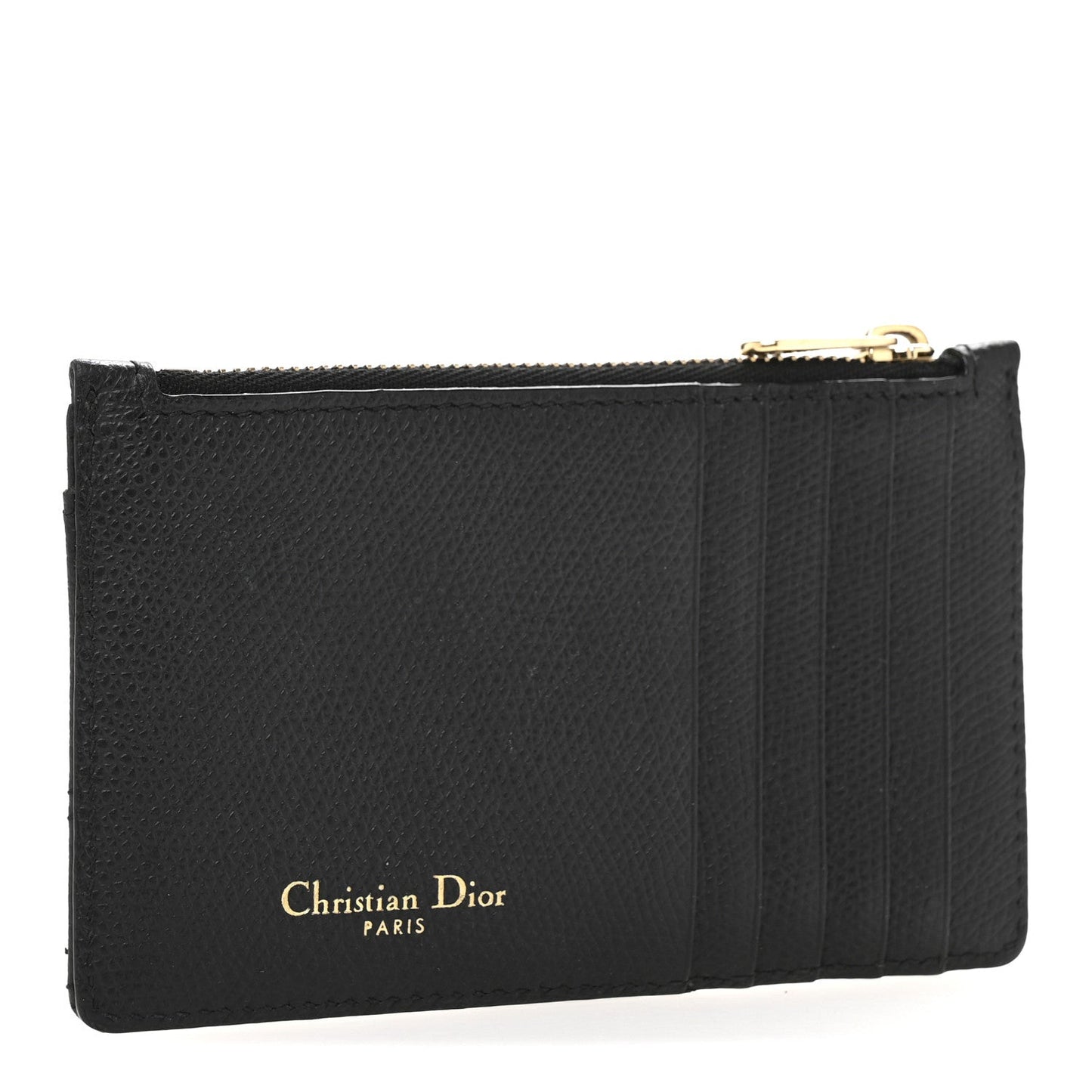 This is an authentic CHRISTIAN DIOR Grained Calfskin Cannage Diorama Wallet in Black. This stylish, compact wallet is crafted in geometrically constructed and textured calfskin leather in black. The wallet features an exterior pocket detailed with a Dior gold embellishment and card slots on the reverse side. This top zipper opens to a fabric interior.Follow this item for alerts. Christian Dior is a registered trademark of Christian Dior. FASHIONPHILE is not affiliated with Christian Dior.