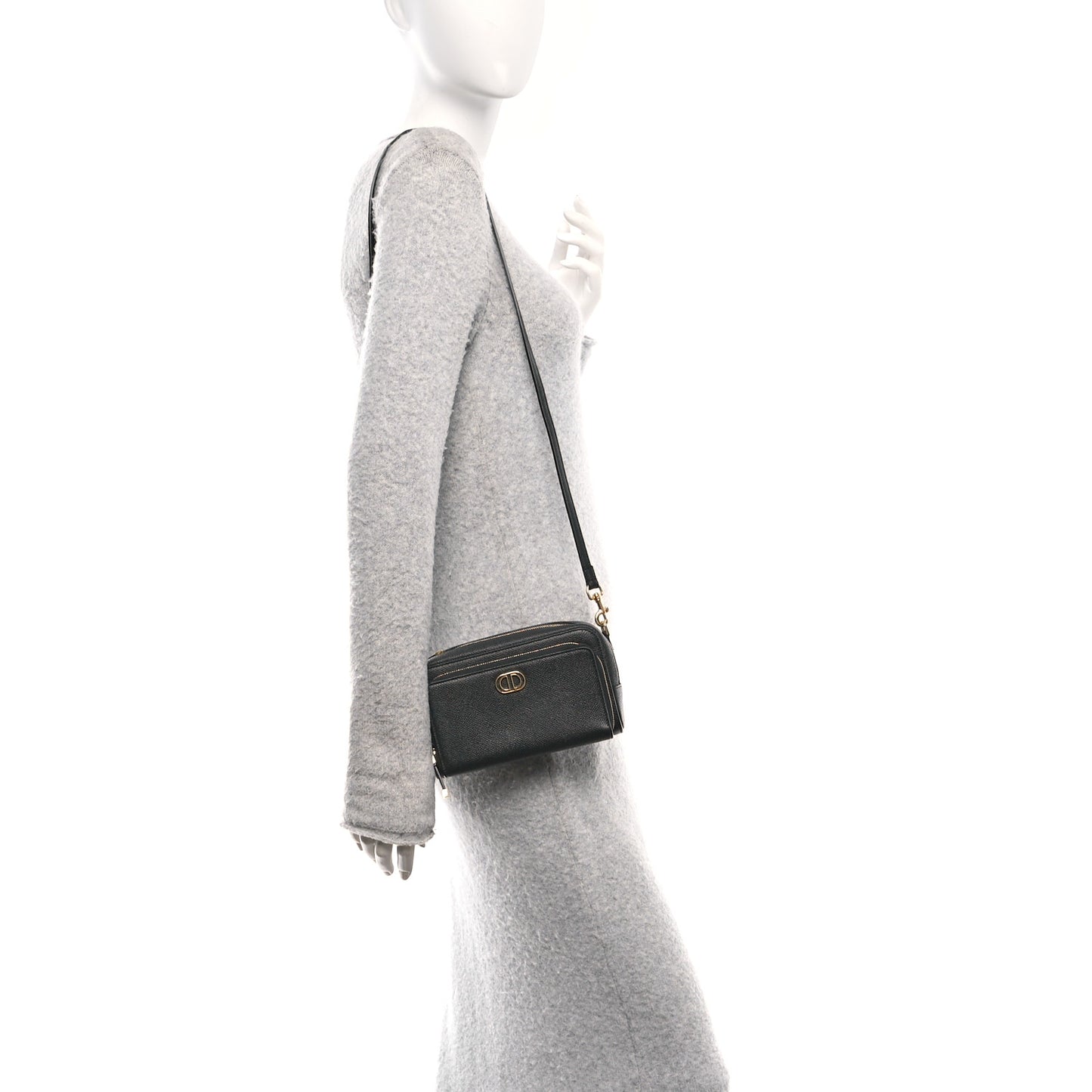 This is an authentic CHRISTIAN DIOR Grained Calfskin Caro Double Pouch in Black. This versatile bag is crafted of grained calfskin leather in black. It features a removable adjustable black leather crossbody strap and a front zippered pocket with CD logo. The main zipper opens to a black suede inteior.Follow this item for alerts. Christian Dior is a registered trademark of Christian Dior. FASHIONPHILE is not affiliated with Christian Dior.