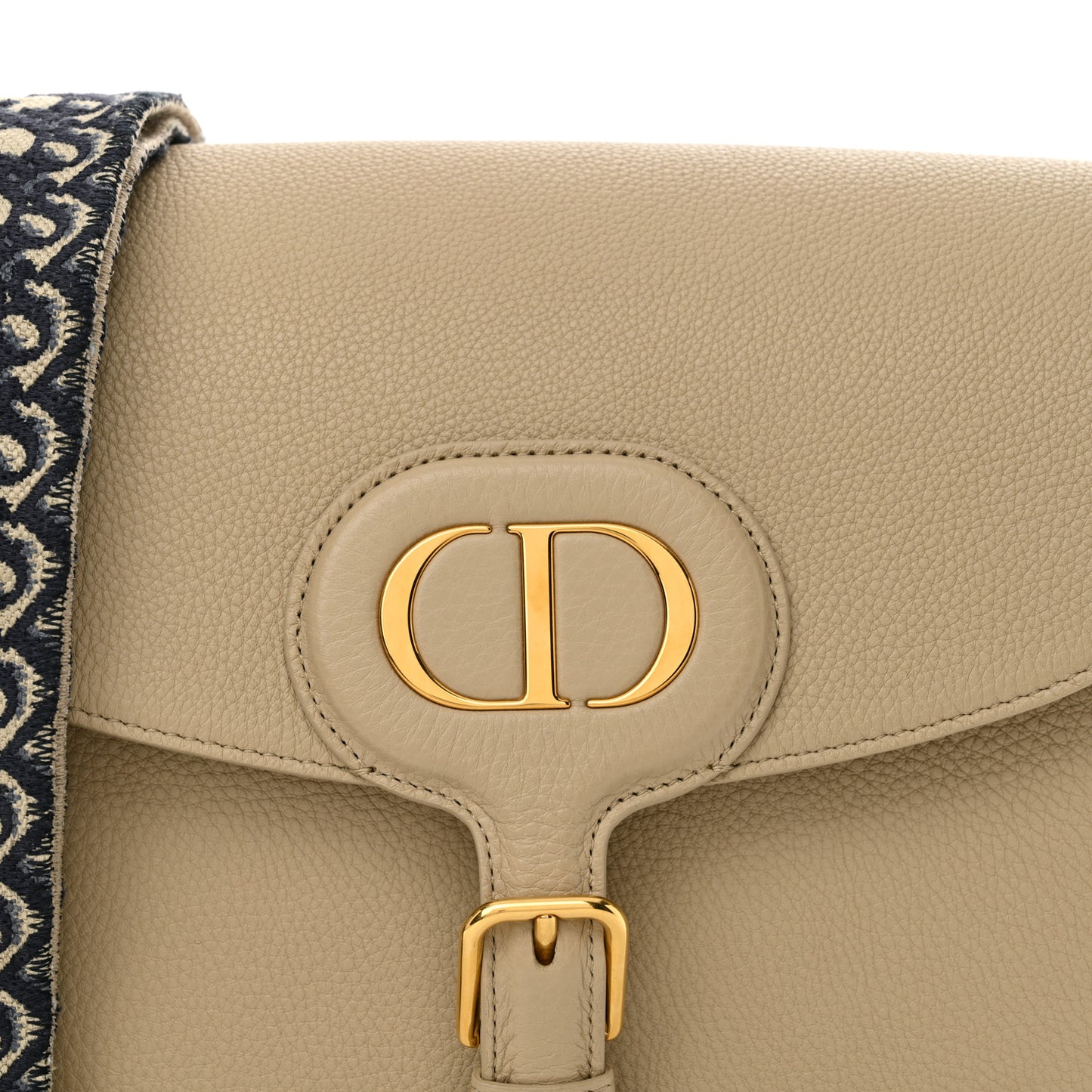 This is an authentic CHRISTIAN DIOR Grained Calfskin Large Bobby Flap in Warm Taupe. This flap bag is finely crafted of grained calfskin leather in beige. The bag features a Dior monogram canvas shoulder strap and polished gold hardware. The flap opens to a beige suede interior with a leather patch pocket.Follow this item for alerts. Christian Dior is a registered trademark of Christian Dior. FASHIONPHILE is not affiliated with Christian Dior.