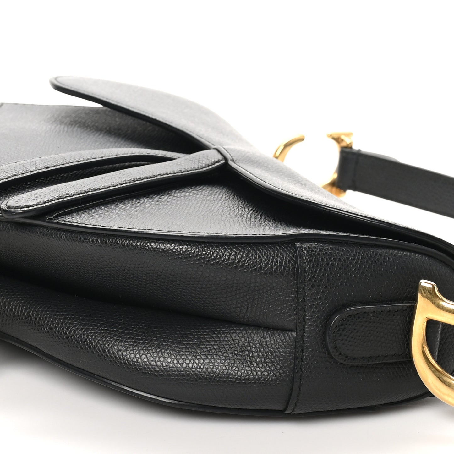 This is an authentic CHRISTIAN DIOR Grained Calfskin Saddle Bag in Black. This chic bag is crafted of grained calfskin leather in black. This bag features the saddle bag shape, short leather shoulder strap with a polished aged gold "C" and "D" anchors on either end of the handle for handle and a prominent hanging Dior "D" charm. The interior of the bag is a black microfiber textile with a zipper pocket.Follow this item for alerts. Christian Dior is a registered trademark of Christian Dior. FASHIONPHILE is not affiliated with Christian Dior.