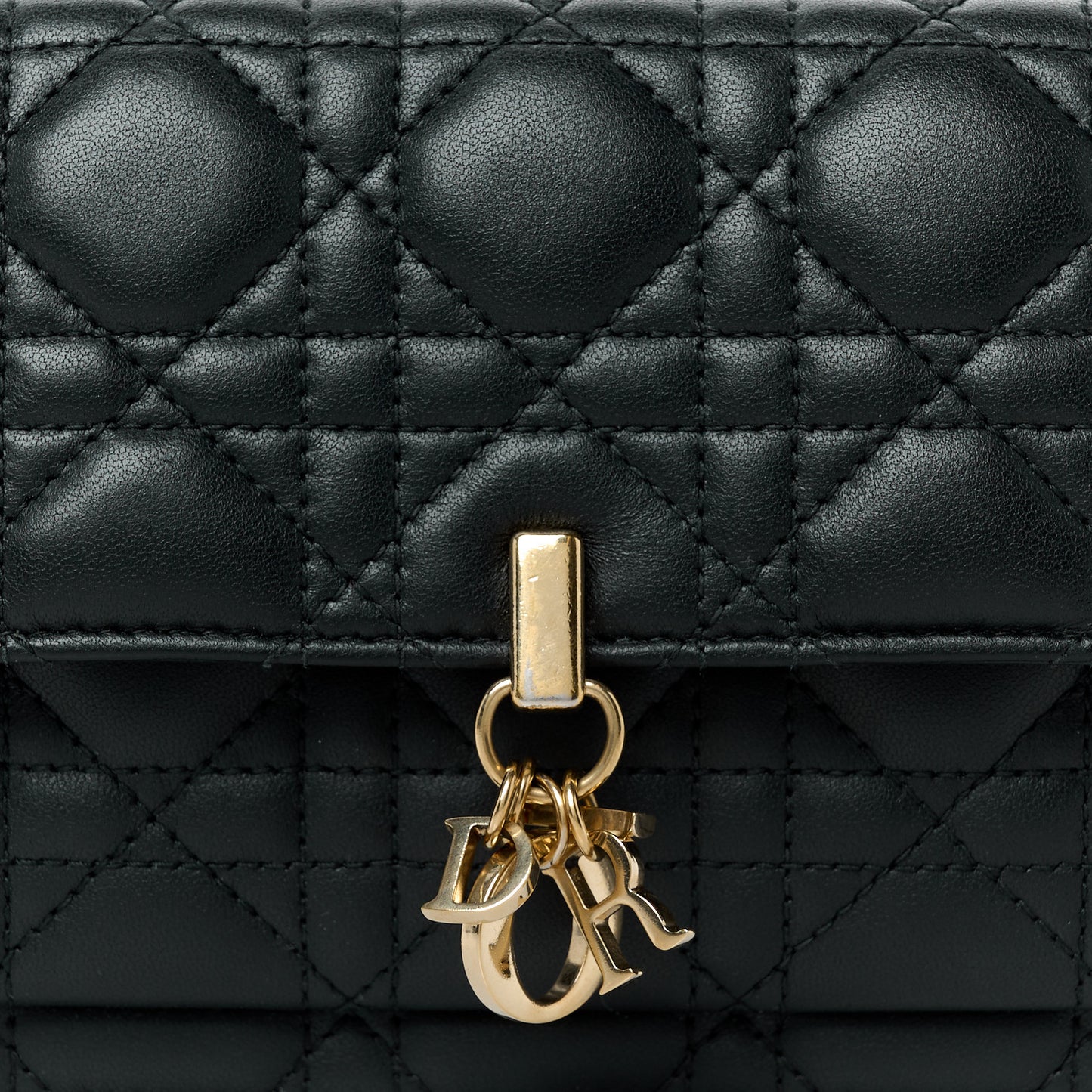 This is an authentic CHRISTIAN DIOR Lambskin Cannage Lady Dior Chain Pouch Black. This stylish bag is finely crafted of black lambskin cannage quilted leather. The bag features and polished gold hardware including a Dior initials charm. The zipper opens to a black leather interior with card slots and a zipper pocket.Follow this item for alerts. Christian Dior is a registered trademark of Christian Dior. FASHIONPHILE is not affiliated with Christian Dior.