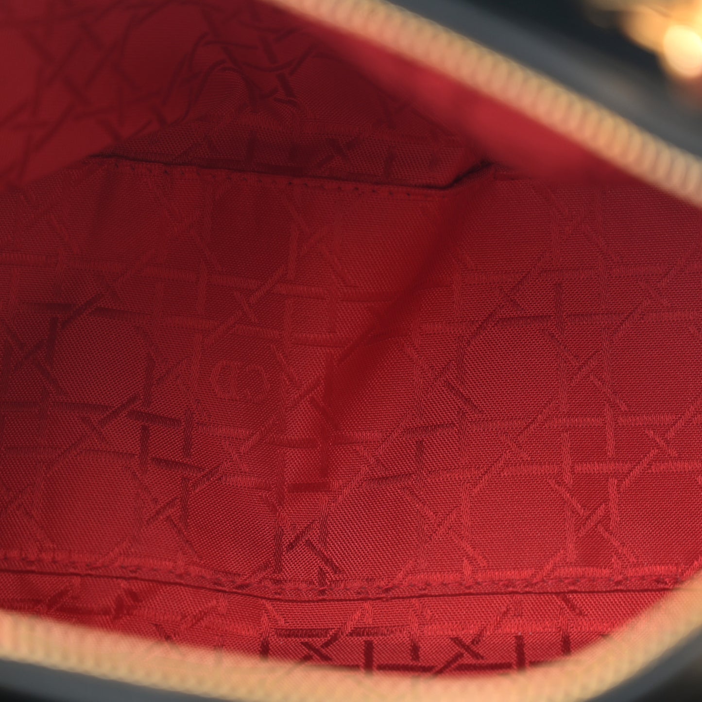 This is an authentic CHRISTIAN DIOR Lambskin Cannage Medium Lady Dior in Black. This chic tote is crafted of black cannage quilted lambskin leather. The bag features leather top handles with polished gold hardware, including a hanging Dior logo charm. The top zipper opens to a red Dior monogram jacquard fabric interior with a zipper pocket.Follow this item for alerts. Christian Dior is a registered trademark of Christian Dior. FASHIONPHILE is not affiliated with Christian Dior.
