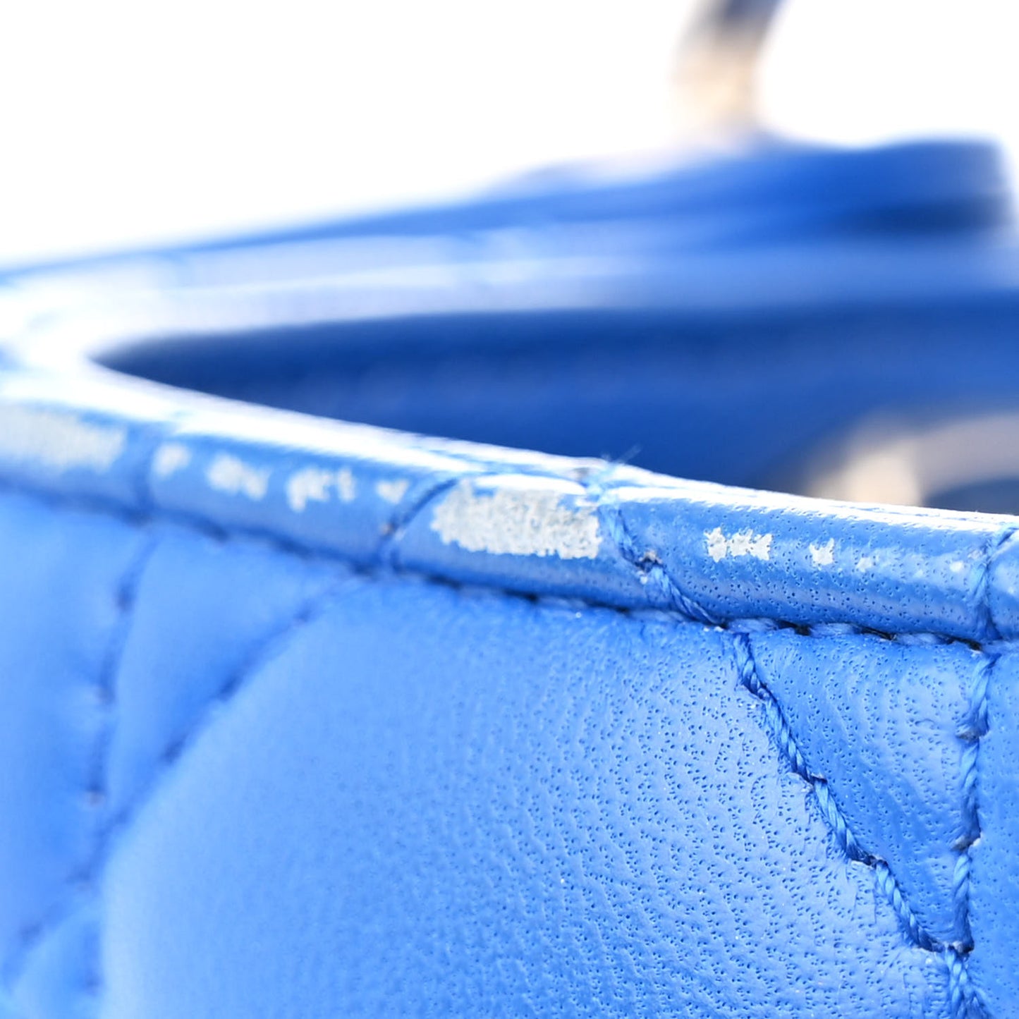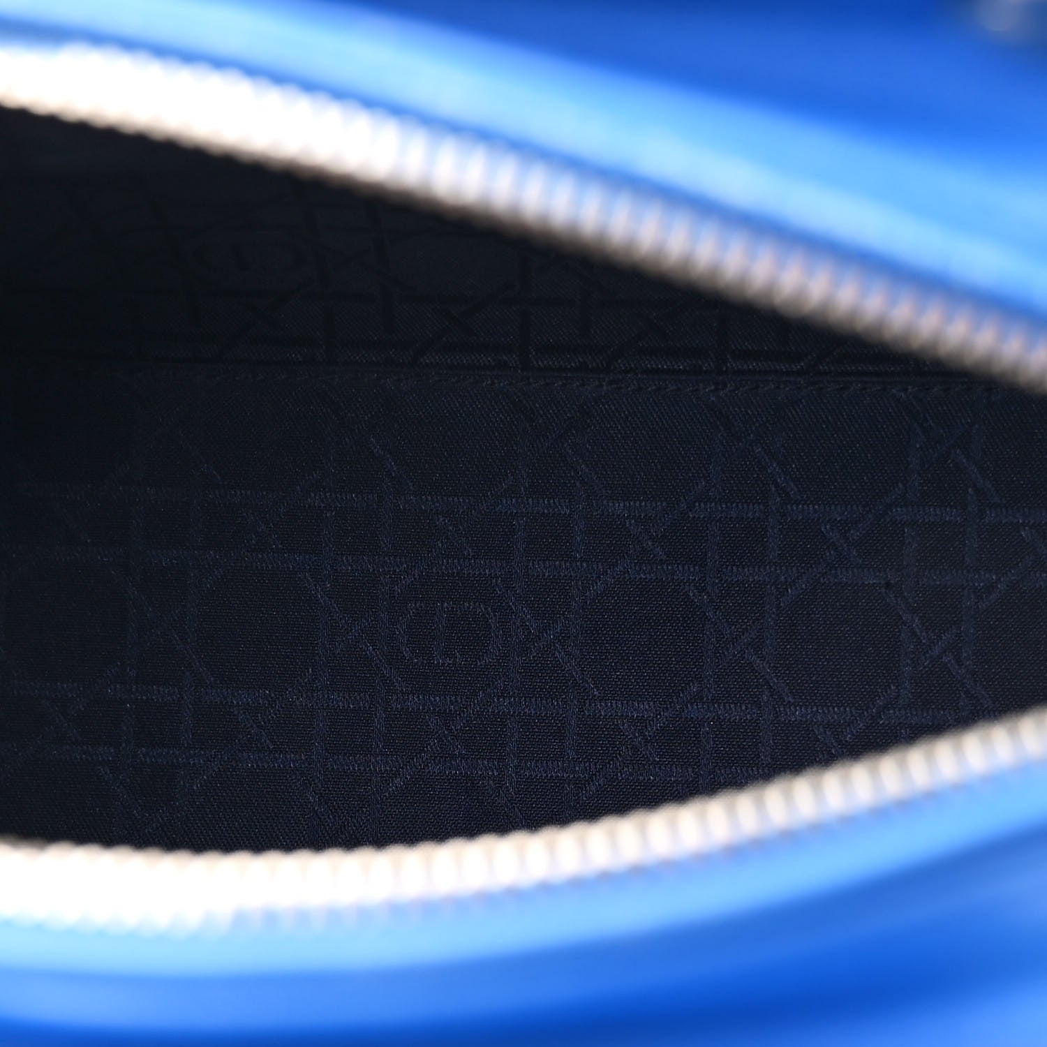 This is an authentic CHRISTIAN DIOR Lambskin Cannage Medium Lady Dior in Blue. Crafted by hand, this bright blue lambskin leather tote is enhanced by iconic Dior 'Cannage' stitching. This handbag features leather top handles and an optional shoulder strap, with silver-toned hardware including the classic Dior initials logo charms. The top zipper opens to a black Dior cannage jacquard fabric interior with a zipper pocket.Follow this item for alerts. Christian Dior is a registered trademark of Christian Dior. FASHIONPHILE is not affiliated with Christian Dior.