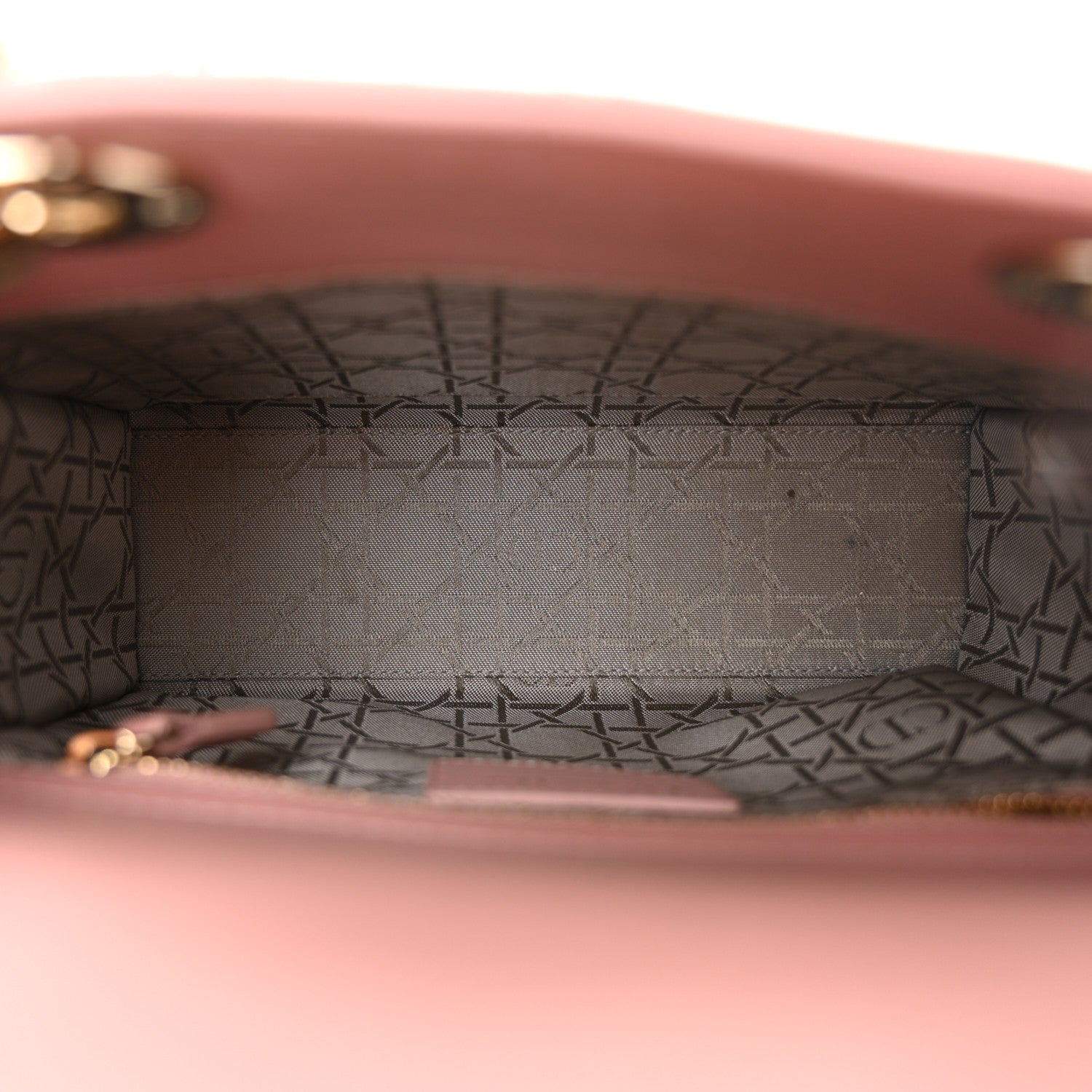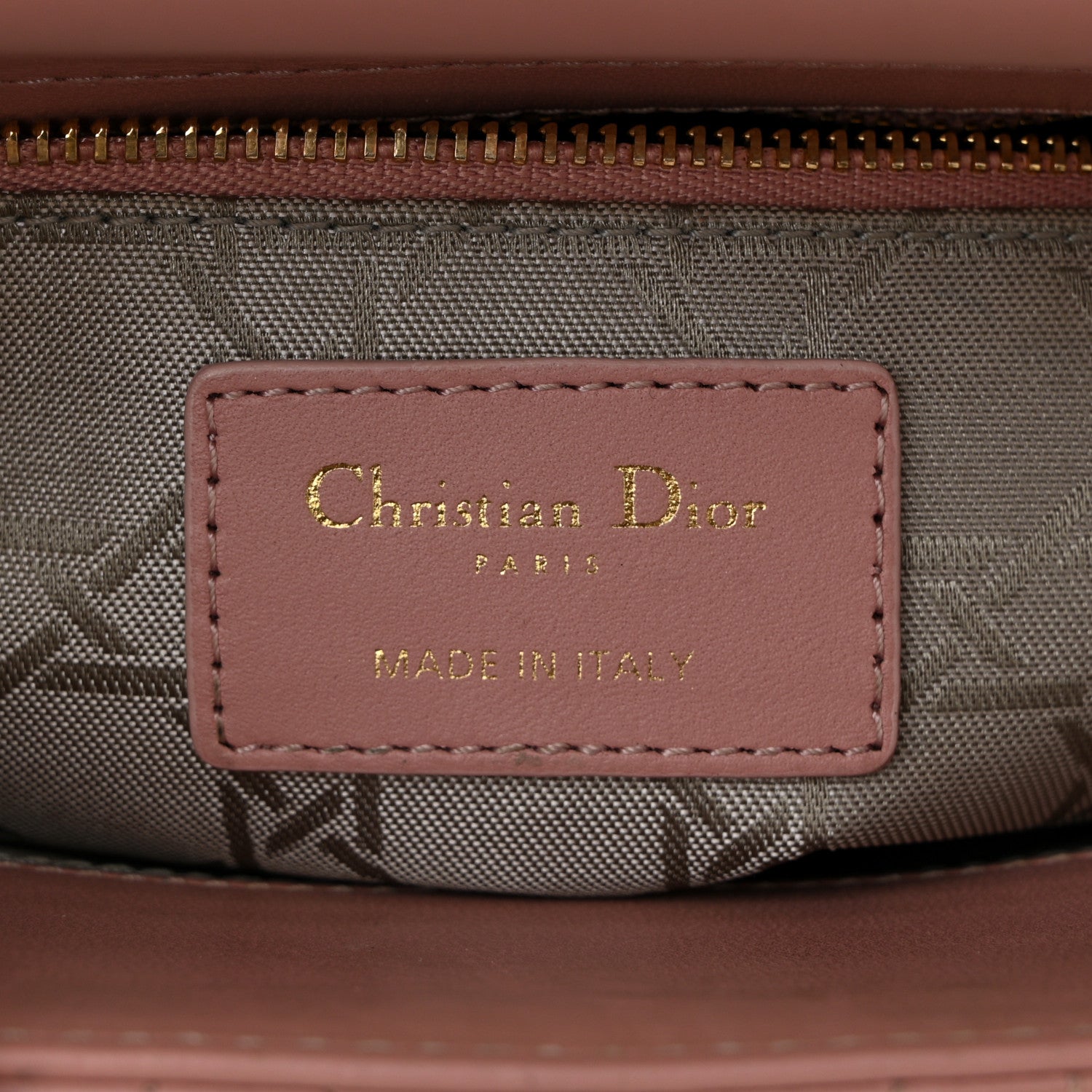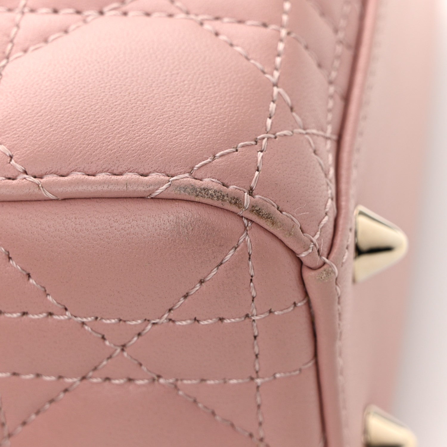 This is an authentic CHRISTIAN DIOR Lambskin Cannage Small My ABCDior Lady Dior in Fard. This chic tote is crafted of quilted lambskin leather in soft pink. The bag features leather top handles, an optional leather shoulder strap, and polished gold hardware including hanging Dior initials logo charm. The top opens to a brown Dior monogram jacquard fabric interior with a zipper pocket.Follow this item for alerts. Christian Dior is a registered trademark of Christian Dior. FASHIONPHILE is not affiliated with Christian Dior.