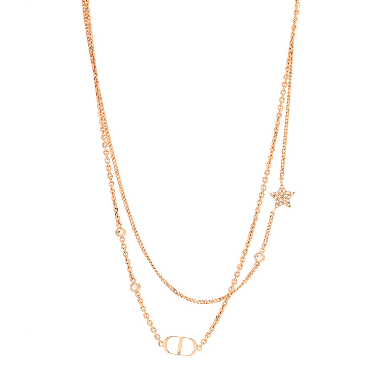 This is an authentic CHRISTIAN DIOR Metal Crystal Petit CD Double Necklace in Gold. The exquisite detail and charm of this Christian Dior necklace make this an ideal piece for your collection. The necklace features "CD" letters in a gold-tone, crystals, and a star.Follow this item for alerts. Christian Dior is a registered trademark of Christian Dior. FASHIONPHILE is not affiliated with Christian Dior.