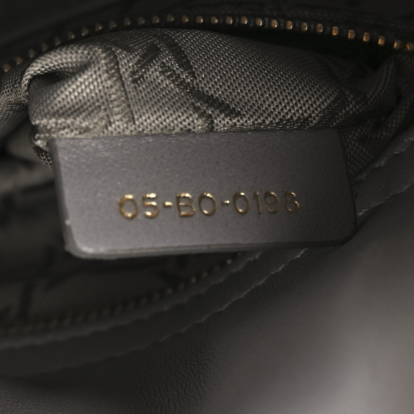 This is an authentic CHRISTIAN DIOR Metallic Lambskin Cannage Mini Lady Dior in Grey. This small handbag is crafted of metallic grey leather with a geometric quilted pattern. It features leather handles, an optional gold chain shoulder strap with a leather shoulder pad, and gold hardware including handle rings, clasps, and a hanging “Dior" letters charm. The top is secured by an interior flap and opens to a gray Dior logo-jacquard fabric with a zipper pocket.Follow this item for alerts. Christian Dior is a registered trademark of Christian Dior. FASHIONPHILE is not affiliated with Christian Dior.