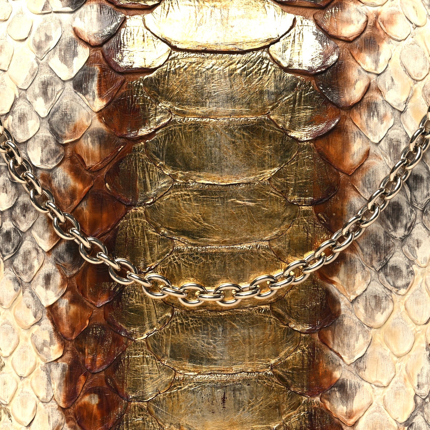 Christian Dior/ Bags/ Shoulder Bags /Christian Dior Metallic Snakeskin Lady Dior Croisiere Chain Clutch Beige Gold