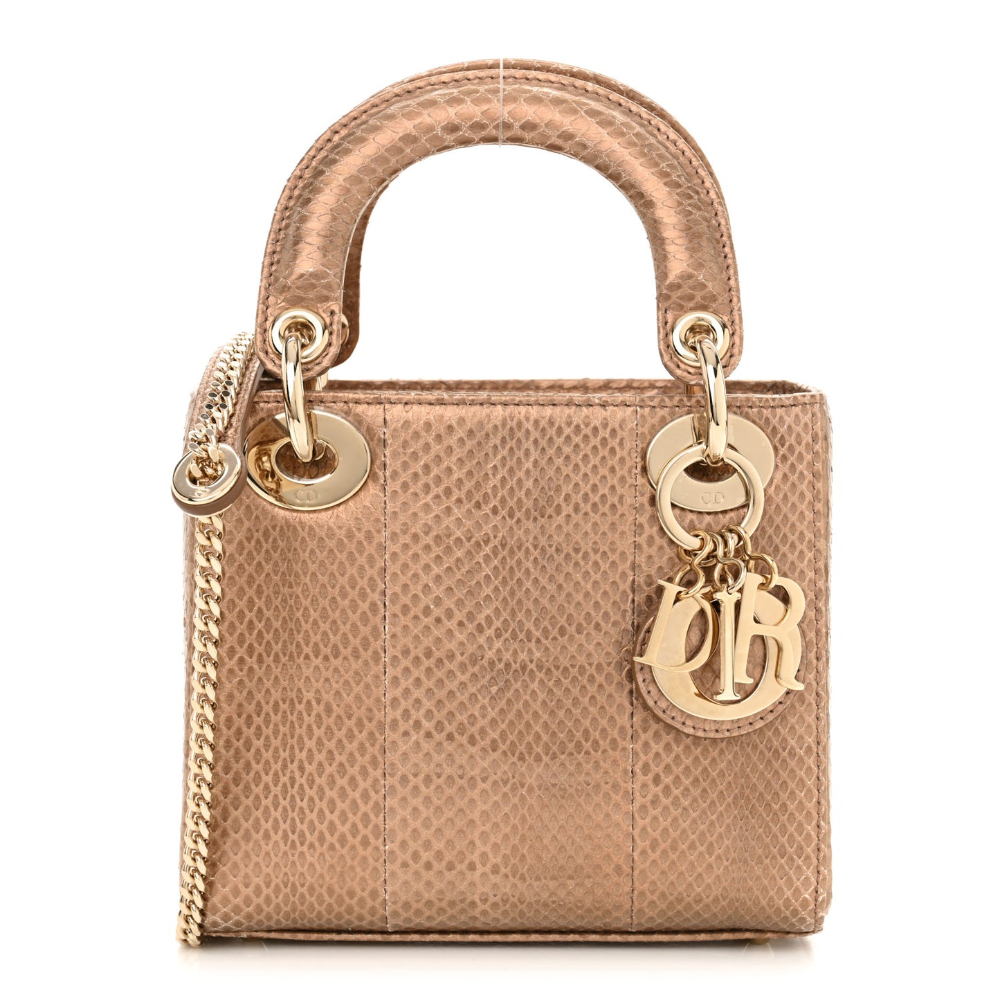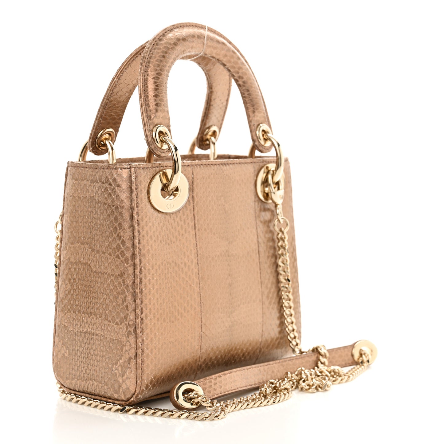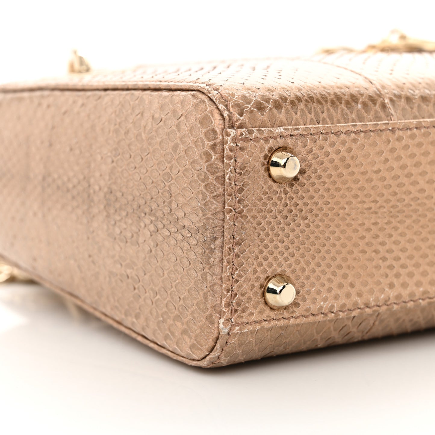 Christian Dior/ Bags/ Shoulder Bags /Christian Dior Metallic Snakeskin Mini Lady Dior Light Gold Multicolor