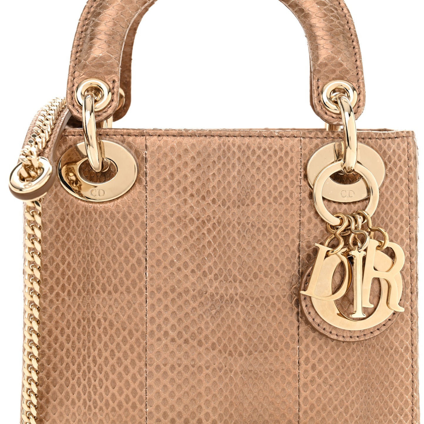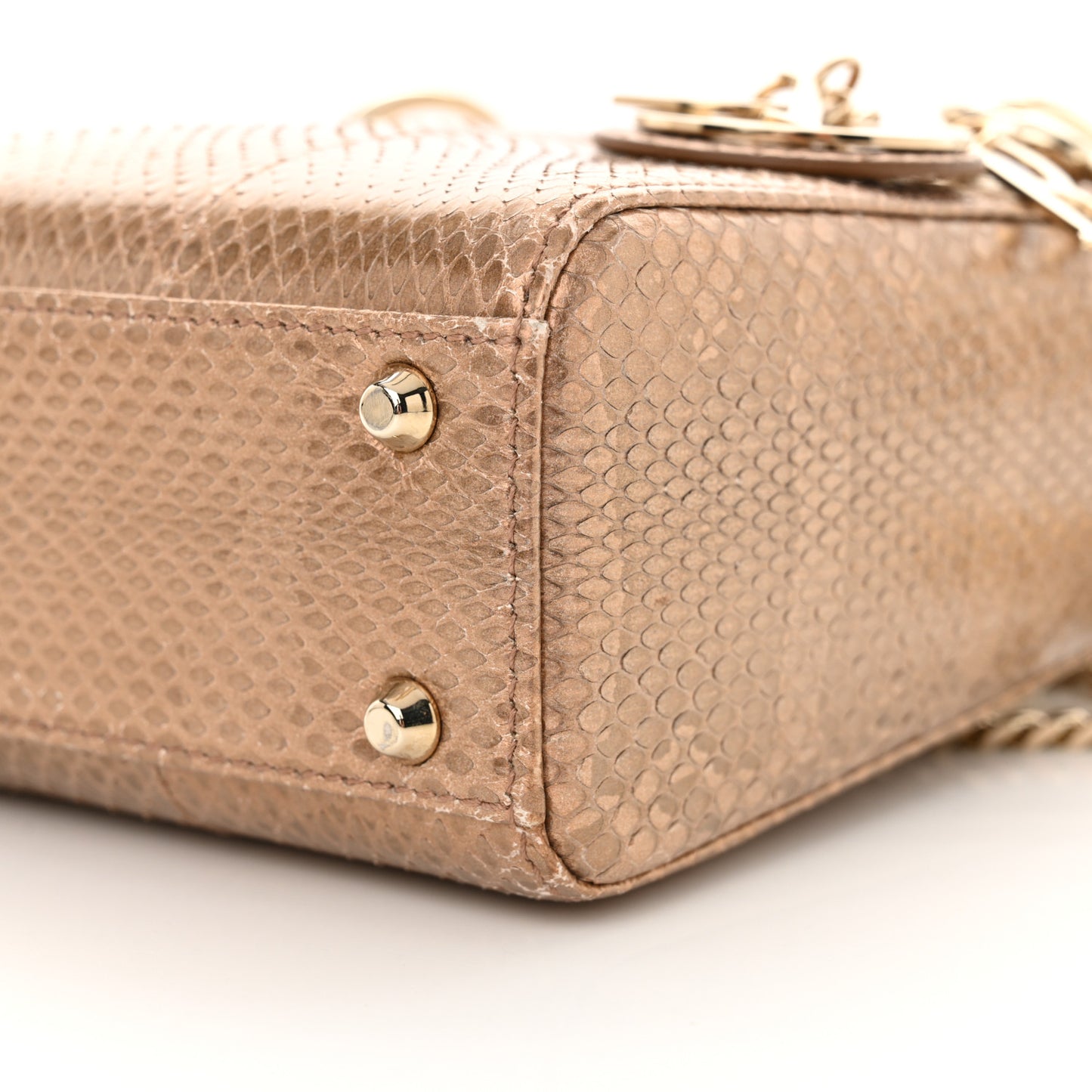 Metallic Snakeskin Mini Lady Dior Light Gold Multicolor