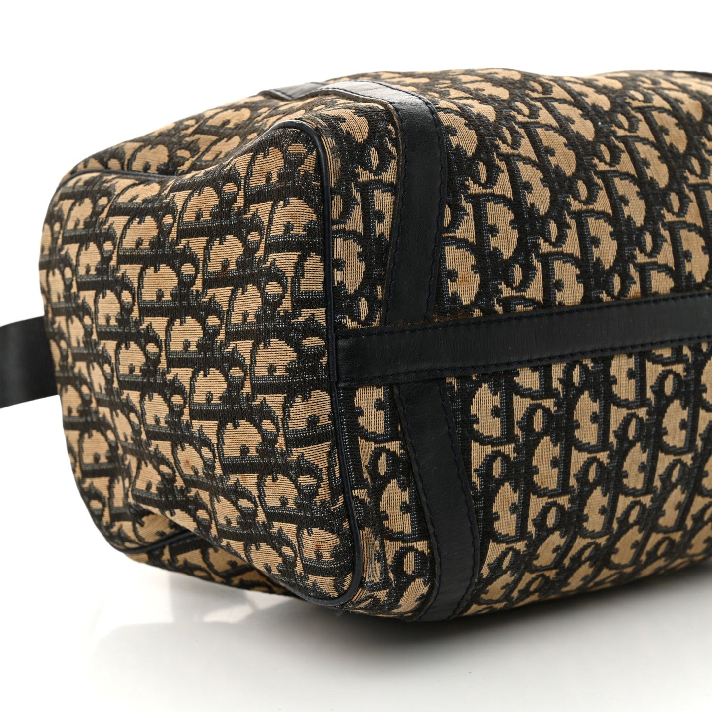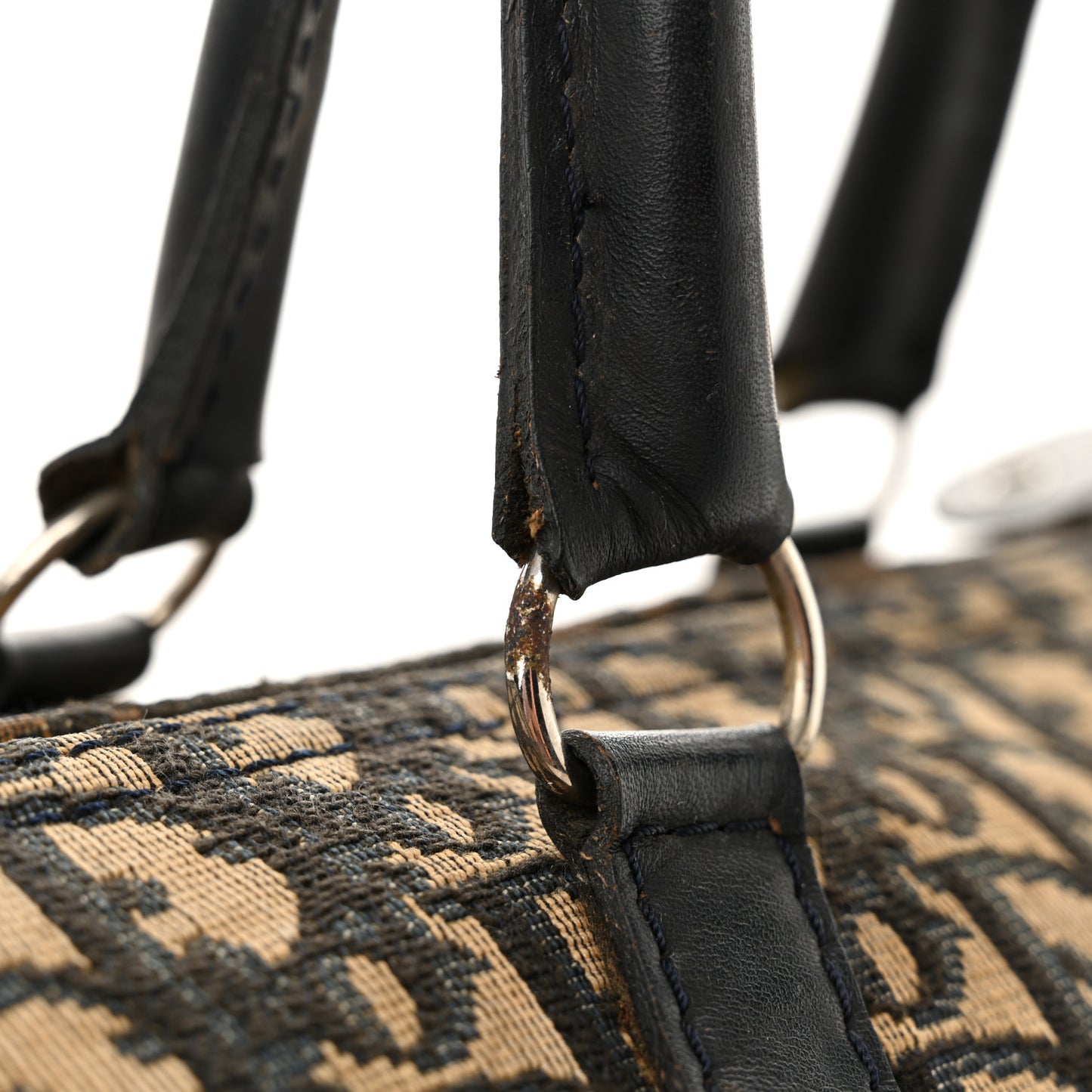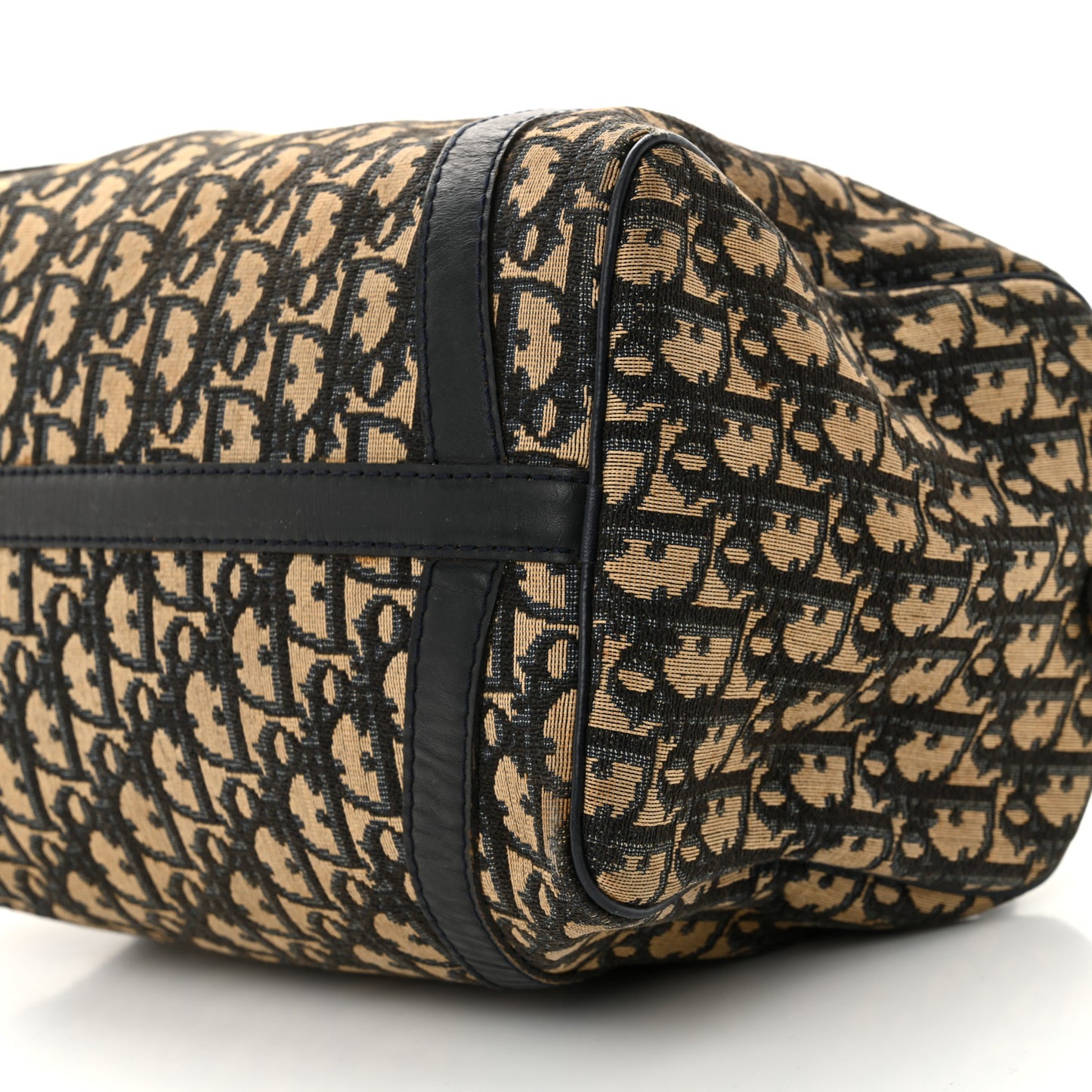 This is an authentic CHRISTIAN DIOR Monogram Boston in Navy Blue. This bag is crafted of monogram canvas with dark blue leather trim and rolled top handles. The top zipper opens to a dark blue leather interior with a zippered pocket.Follow this item for alerts. Christian Dior is a registered trademark of Christian Dior. FASHIONPHILE is not affiliated with Christian Dior.