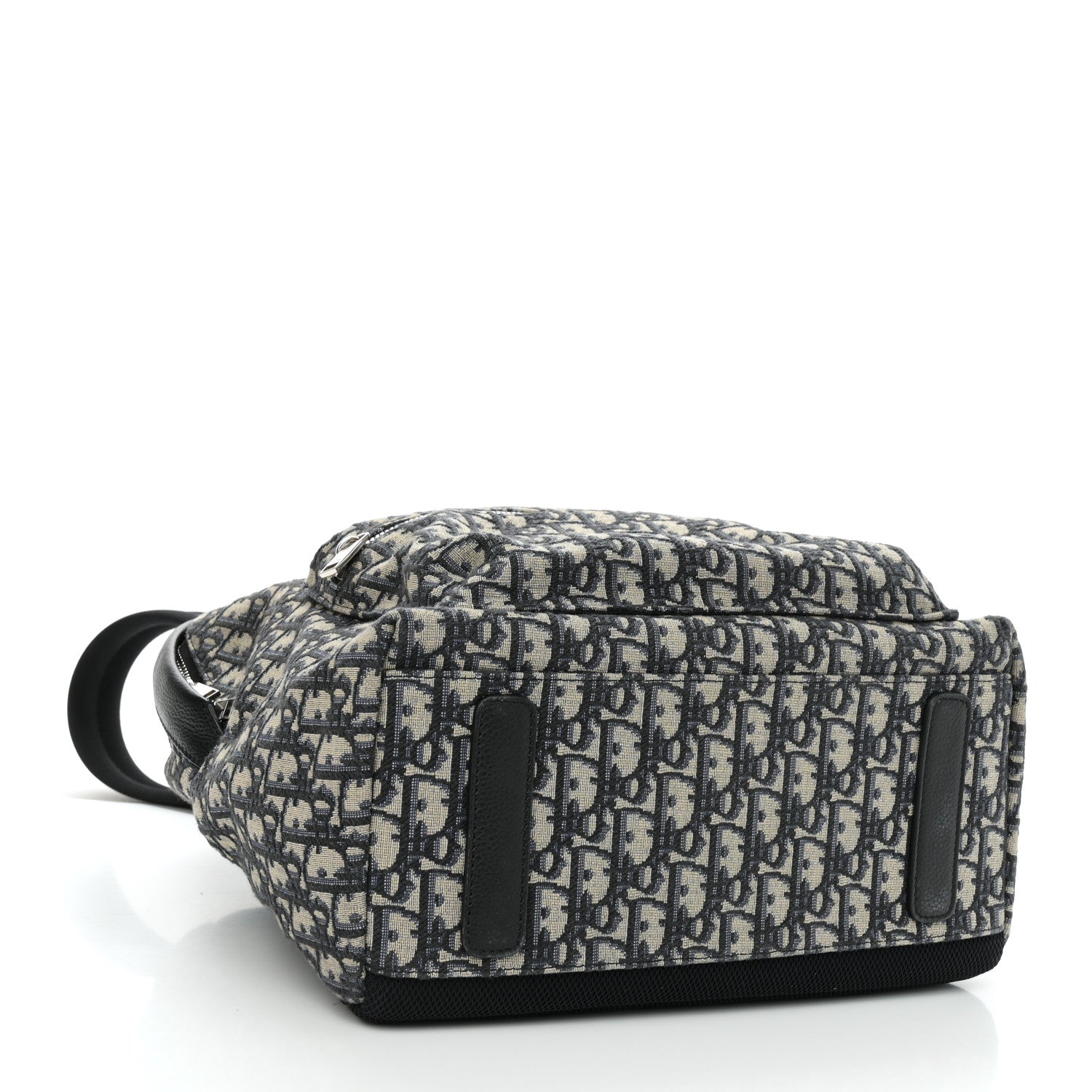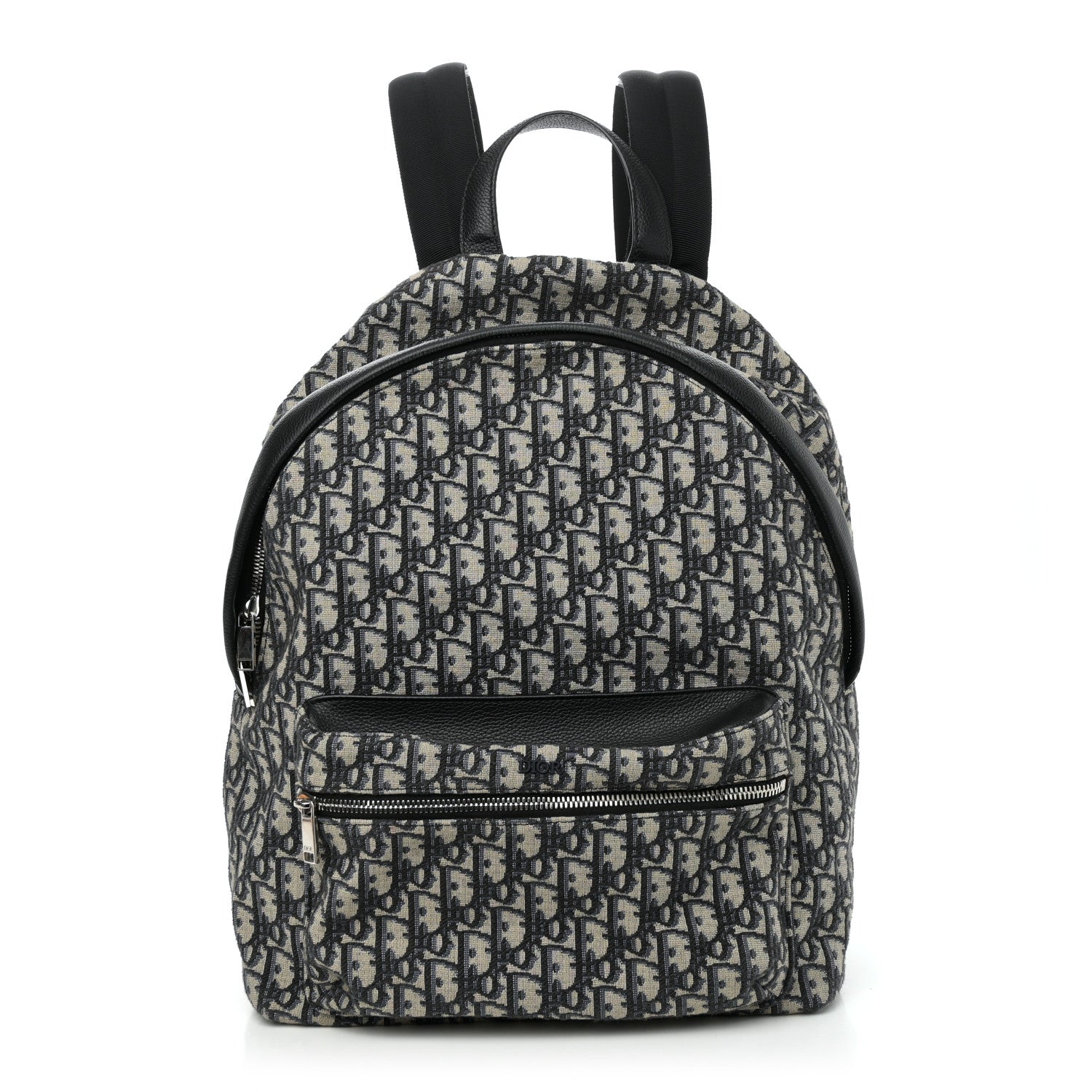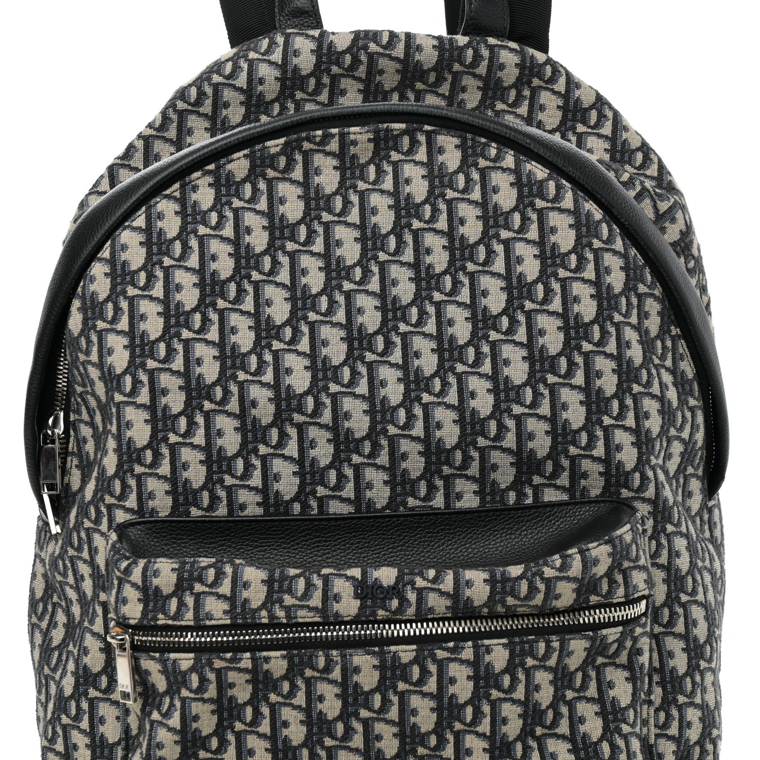 This is an authentic CHRISTIAN DIOR Oblique Calfskin Rider Backpack in Beige and Black. This stylish backpack is crafted of durable Jacquard logo canvas with textured black calfskin leather trim. The bag features a leather top handle, adjustable padded nylon shoulder straps, and a front zippered pocket. The top zipper opens to a black fabric interior with a padded sleeve for a laptop or tablet.Follow this item for alerts. Christian Dior is a registered trademark of Christian Dior. FASHIONPHILE is not affiliated with Christian Dior.