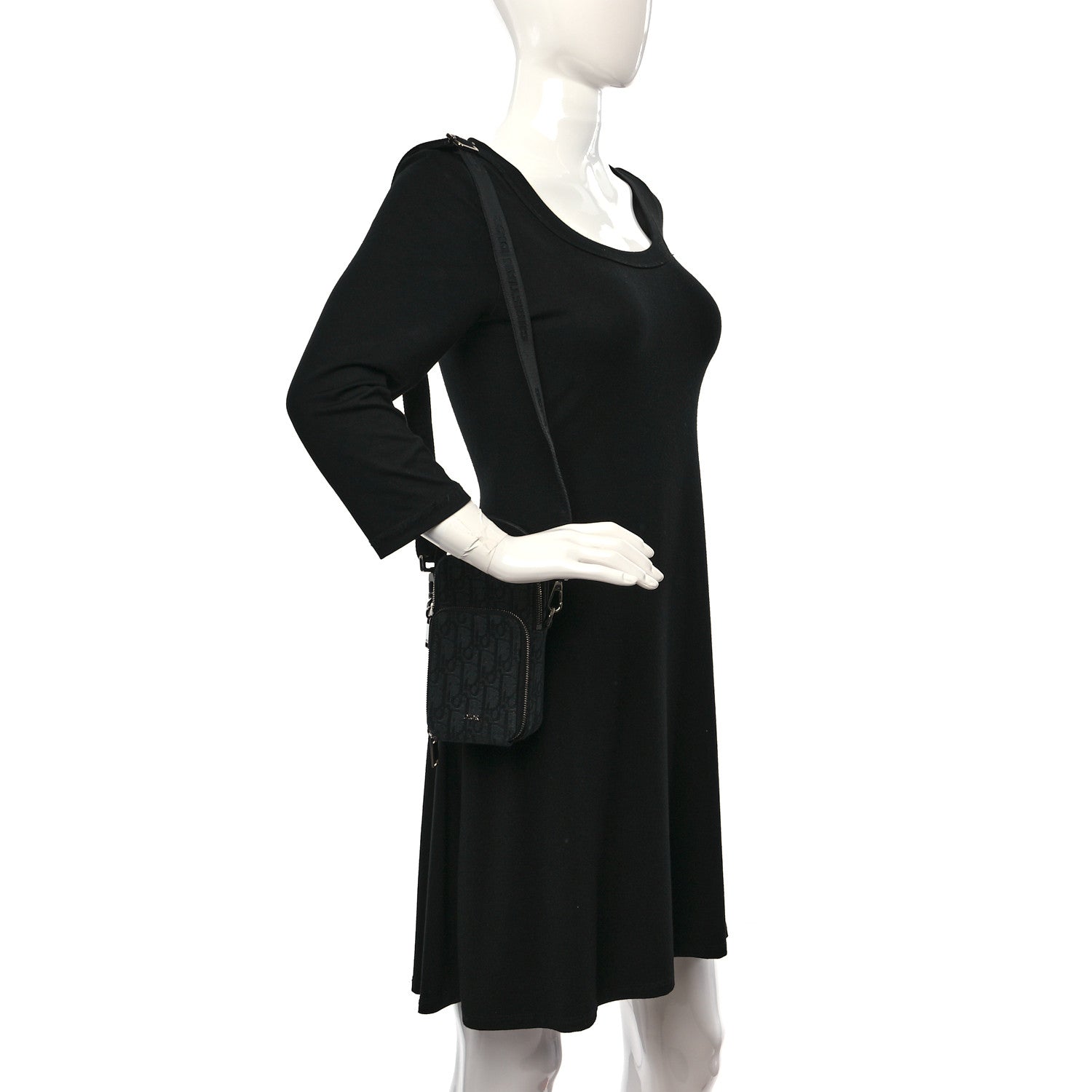 This is an authentic CHRISTIAN DIOR Oblique Micro Rider Pouch in Black. This stylish crossbody is crafted of oblique Christian Dior oblique canvas in black. The bag features a leather top handle, an optional adjustable shoulder strap, a front zipper pocket with a dark silver Dior logo, and dark silver hardware. The wrap-around zipper opens to a black fabric interior.Follow this item for alerts. Christian Dior is a registered trademark of Christian Dior. FASHIONPHILE is not affiliated with Christian Dior.