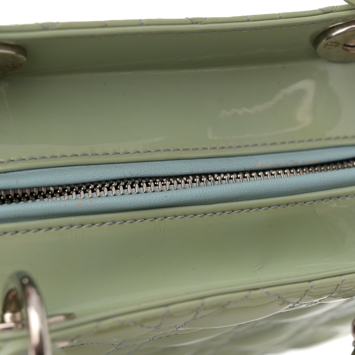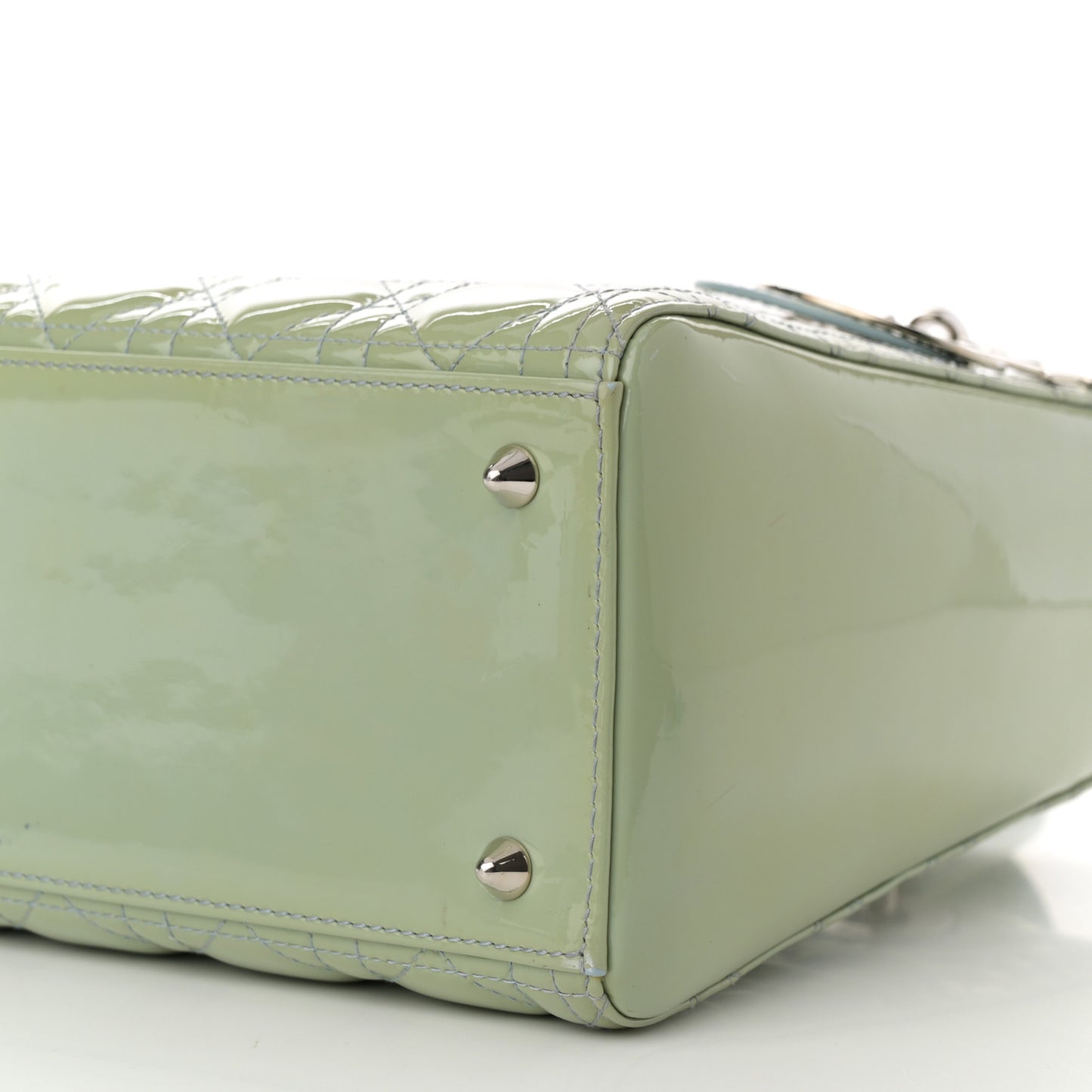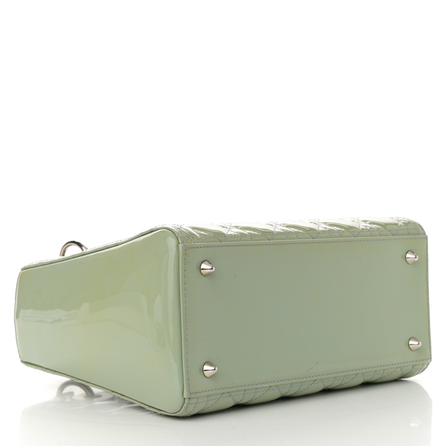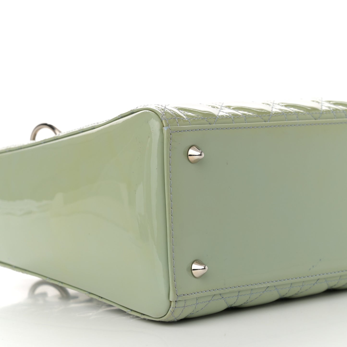 This is an authentic CHRISTIAN DIOR Patent Cannage Medium Lady Dior in Blue Alcier. This super-chic handbag is crafted of geometric-quilted patent leather in blue. The bag features sturdy leather top handles, an optional shoulder strap, and polished silver hardware including hanging Dior initials logo charms. The top zipper opens to a grey Dior monogram jacquard fabric interior with a zippered pocket.Follow this item for alerts. Christian Dior is a registered trademark of Christian Dior. FASHIONPHILE is not affiliated with Christian Dior.