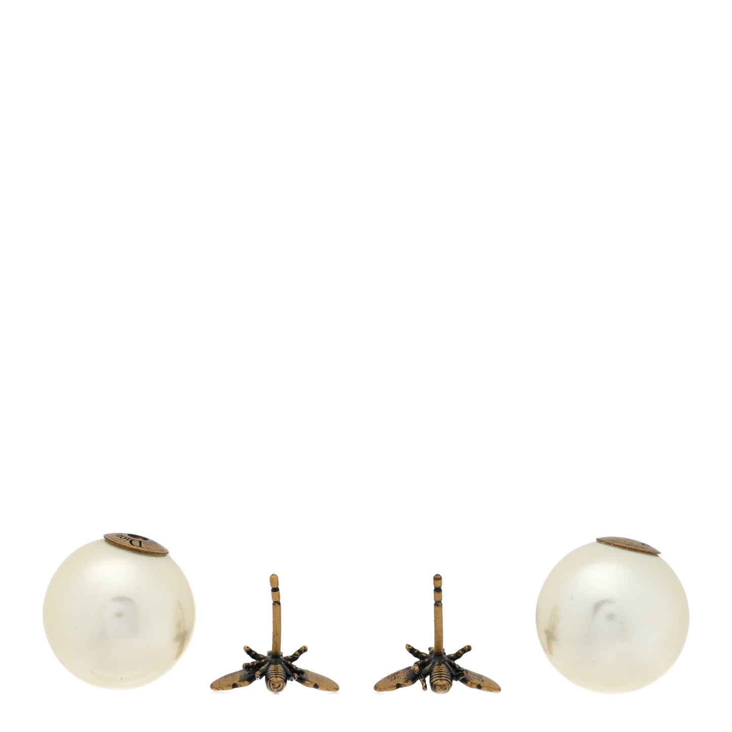 This is a charming pair of CHRISTIAN DIOR Pearl Tribales Bee Earrings in Gold. These tribal-inspired earrings feature small dark aged brass bees in front while the larger bead subtly peeps out from behind the earlobe.Follow this item for alerts. Christian Dior is a registered trademark of Christian Dior. FASHIONPHILE is not affiliated with Christian Dior.