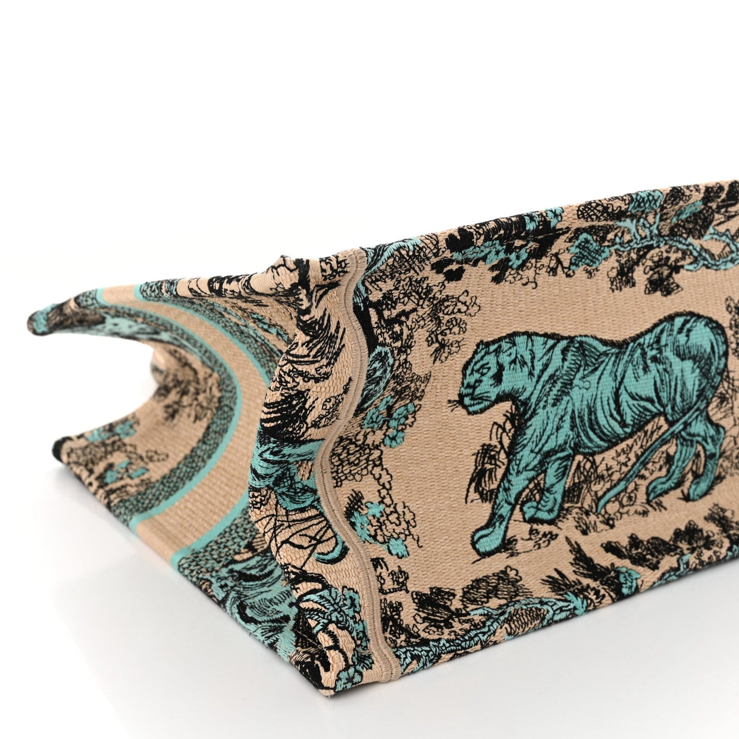 This is an authentic CHRISTIAN DIOR Raffia Embroidered Dioriviera Medium Book Tote in Aquamarina. This tote is crafted of natural raffia with an embroidered beige, blue and black Dior jungle motif. The bag features matching rolled handles and CHRISTIAN DIOR embroidered in black on the front. The top opens to a spacious interior.Follow this item for alerts. Christian Dior is a registered trademark of Christian Dior. FASHIONPHILE is not affiliated with Christian Dior.