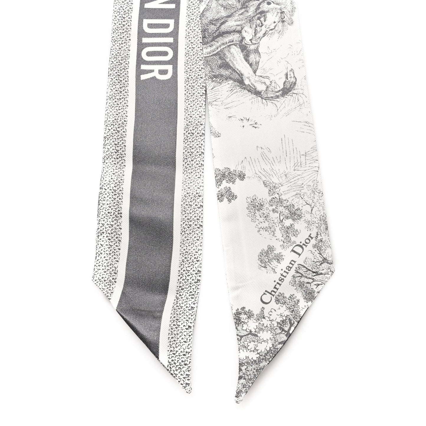 This is an authentic CHRISTIAN DIOR Silk Toile De Jouy Reverse Capri Mitzah Scarf in Grey and White. This 100% silk scarf features an animal motif in gray on a white background.Follow this item for alerts. Christian Dior is a registered trademark of Christian Dior. FASHIONPHILE is not affiliated with Christian Dior.