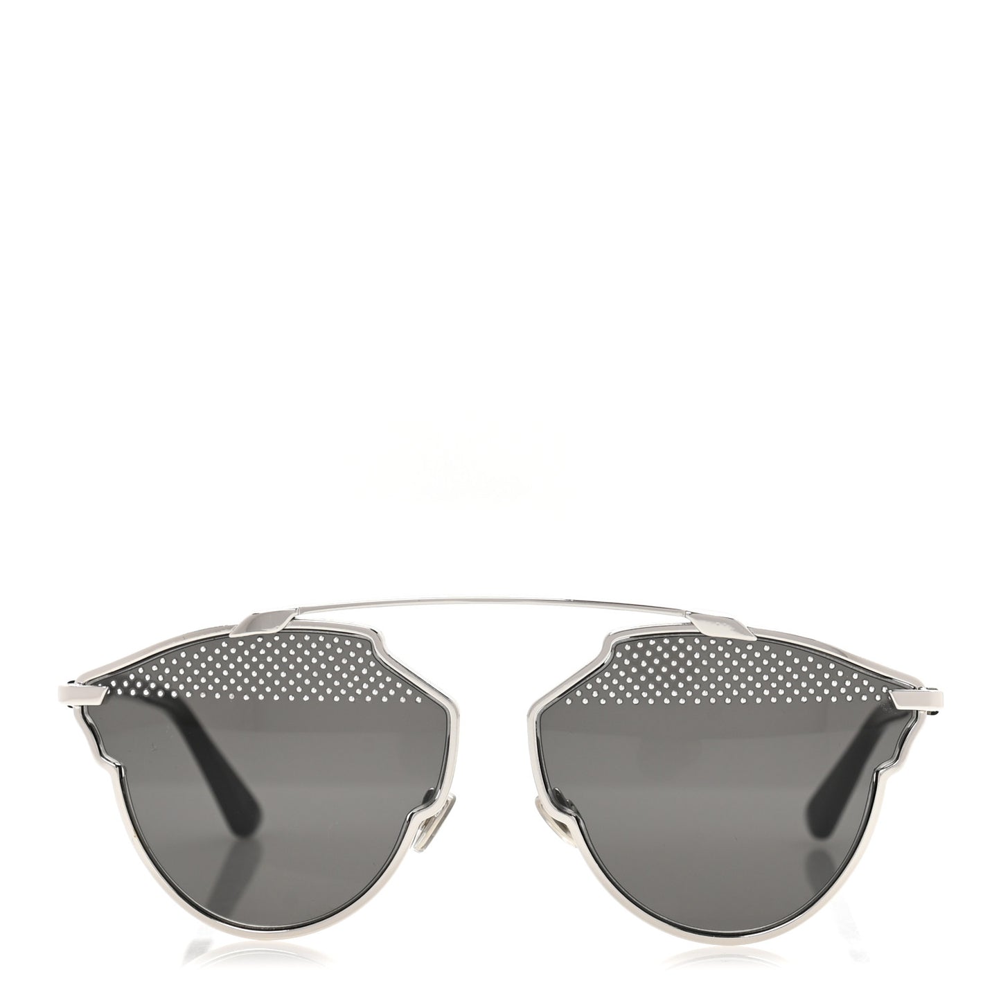 This is an authentic pair of CHRISTIAN DIOR Studded So Real Sunglasses in Black. These modern sunglasses feature stylized aviator wire rims in silver with dark grey lenses. The arms black and are adorned with an engraved CD monogram at the temple.Follow this item for alerts. Christian Dior is a registered trademark of Christian Dior. FASHIONPHILE is not affiliated with Christian Dior.