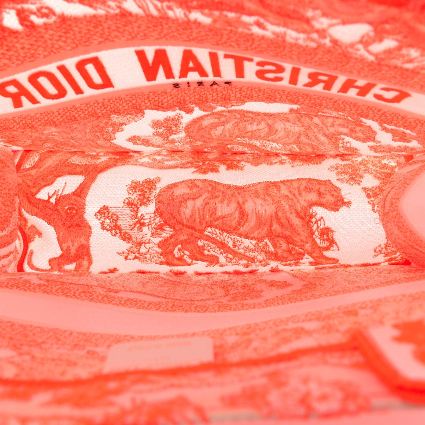 This is an authentic CHRISTIAN DIOR Transparent Canvas Embroidered Medium Dioriviera Toile De Jouy Book Tote in Orange. This colorful tote is finely crafted of embroidered canvas with a bold jungle graphic in bright orange. The bag features matching canvas rolled handles, with the CHRISTIAN DIOR logo embroidered across the front.Follow this item for alerts. Christian Dior is a registered trademark of Christian Dior. FASHIONPHILE is not affiliated with Christian Dior.