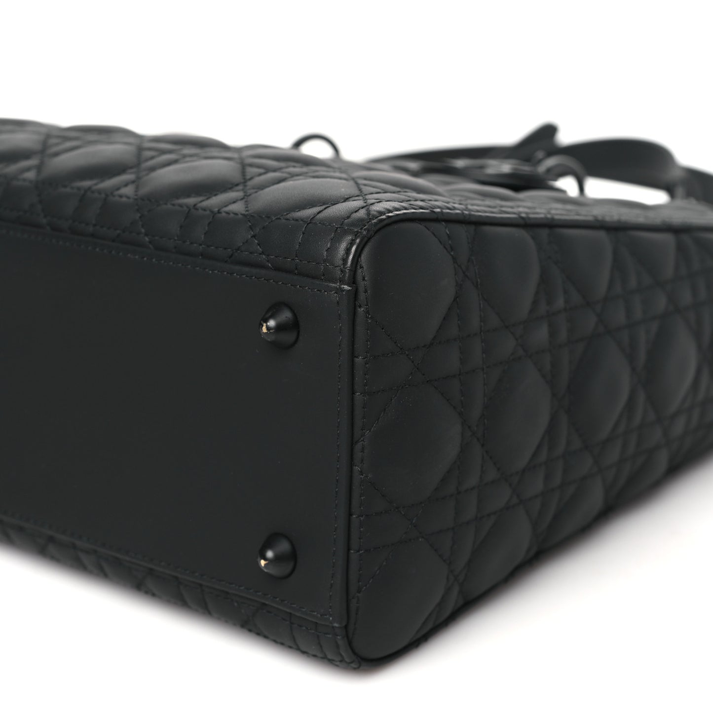 Ultra Matte Calfskin Cannage Large Lady Dior Black