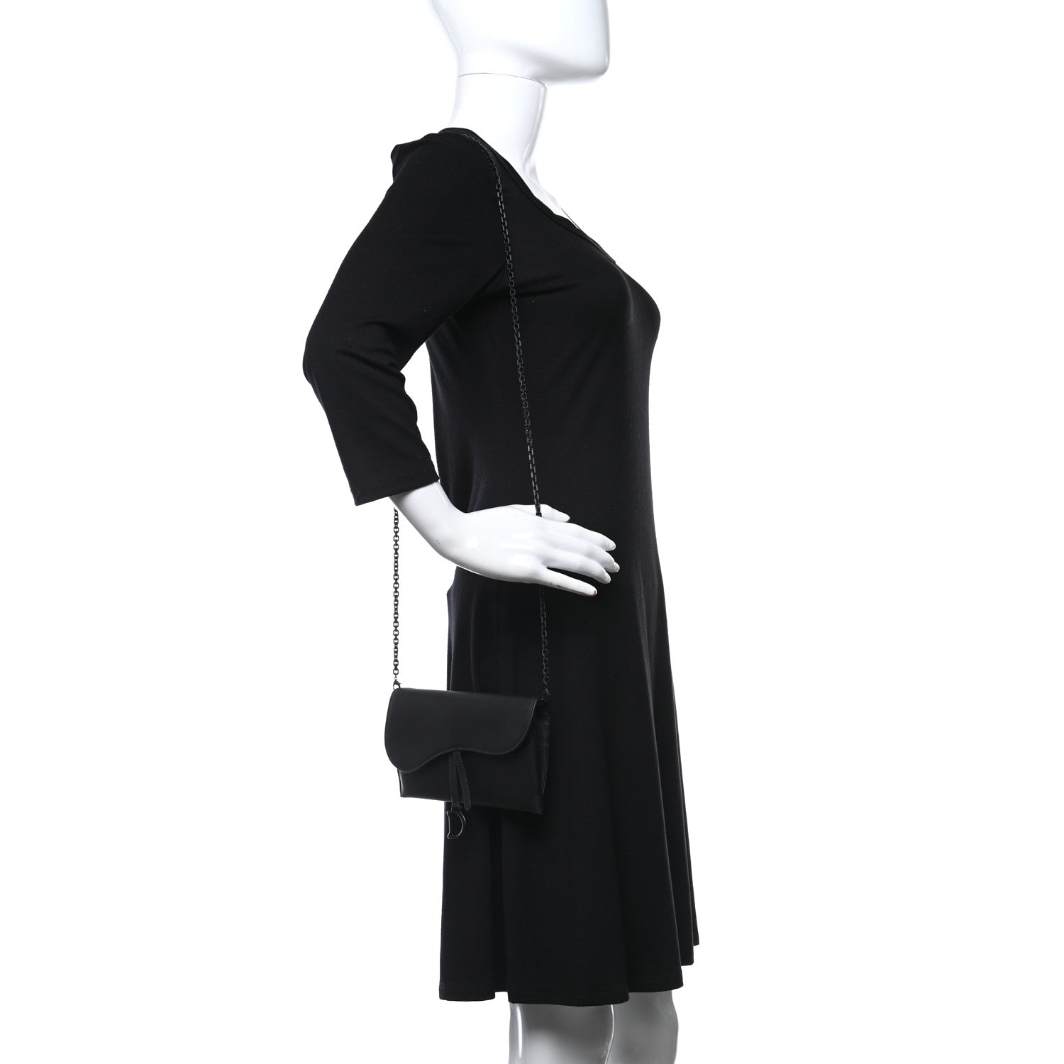 This is an authentic CHRISTIAN DIOR Ultra Matte Calfskin Saddle Chain Wallet Pouch in Black. This petite pouch is crafted of smooth calfskin leather in matte black. The pouch features an optional matte black chain-link crossbody strap and a matching D charm on the flap. This opens to a compact leather interior, ideal for a few cards or other small essentials.Follow this item for alerts. Christian Dior is a registered trademark of Christian Dior. FASHIONPHILE is not affiliated with Christian Dior.